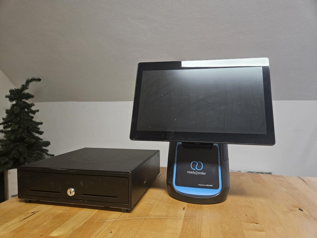 Neuwertiges Kassensystem. Ready to Order. Registrierkassensystem mit Geldkasse für Kleinunternehmen. readyMax inkl. 2. Display für Kunden. Kasse, Drucker, Kundendisp