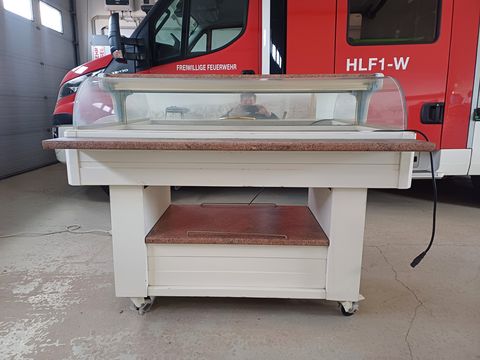 Kühlvitrine der Marke "Zoin", Breite = 150 cm, Arbeitsplattenhöhe 89 cm, Gesamthöhe = 125 cm, voll funktionsfähig. Direktvermarktung Vitrinen