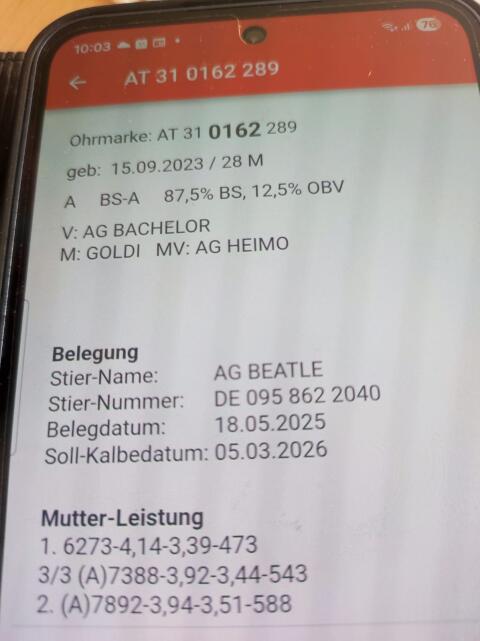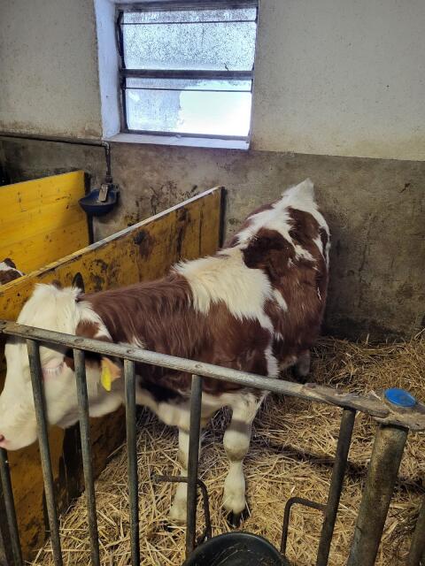 Fleckviehkalb weiblich aus Bio Heumilchbetrieb zu verkaufen. Geburtsdatum 14.01.2026. Keine Leistungsdaten vorhanden. Erste Milchmessung der Mutter ist in ca. 2 Woch