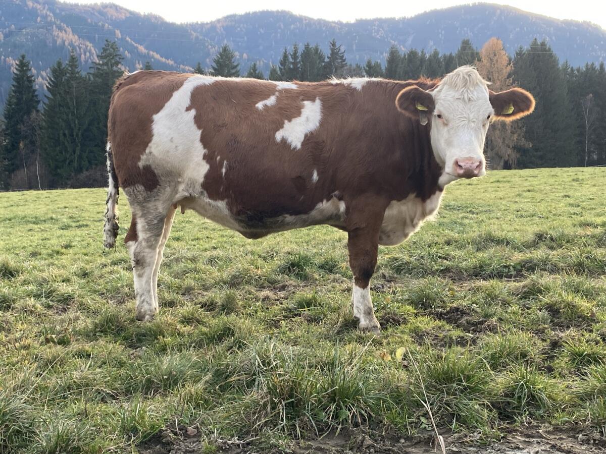 Verkaufe reinerbig hornlose FV Kalbin aus leistungsbereiter Kuhlinie, weidegewohnt, silagefreie Fütterung, gealpt. Cattle market Simmental cattle