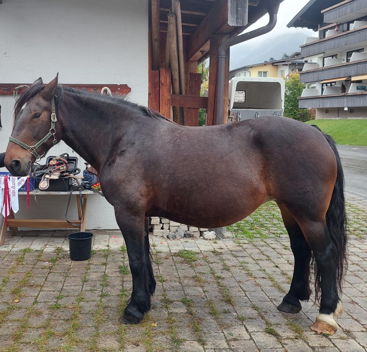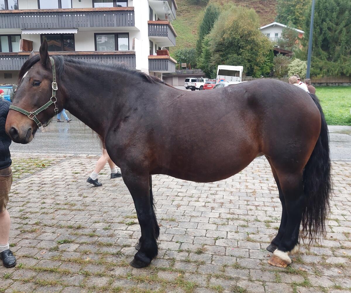 Zum Verkauf steht eine kraftvolle, braune Norikerstute mit schönem Stern, geb. am 06.04.2016, nach Vater Eifel Nero XIII, Mutter Bonbon-Zitta nach Zeisig Schaunitz XV. Die Stute wurde im Sommer jedes Jahr gealpt, im Winter wurde sie regelmäßig zum Kutschenfahren eingespannt, 1- und 2-spännig möglich. Darüber hinaus kann die genügsame Stute als Reit- und Freizeitpferd benutzt werden, so war sie auch bei der heimischen Reiter- und Schnalzergruppe regelmäßig in Verwendung. Darüber hinaus ist die Stute auch zur Nachzucht geeignet, so hat sie in den letzten Jahren immer ein gesundes Fohlen zur Welt gebracht. Sie ist derzeit vom Hengst Rio Nero XV belegt.