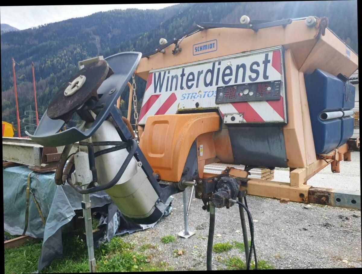 Verkaufe meinen Aufbaustreuer Schmidt Stratos mit folgenden Spezifikationen: Behältervolumen Streugut: 2 m³, Behältervolumen Flüssigkeit: 880 l, Transportsystem: Förderschnecke, Antrieb: Aufsteckpumpe auf Zapfwelle, Möglichkeit Flüssigkeit zu Streugut zuzuführen (Feuchtsalzanlage), Streutellerdurchmesser: 450 mm, inkl. Auf- und Absetzstative, Bj.: 2001.