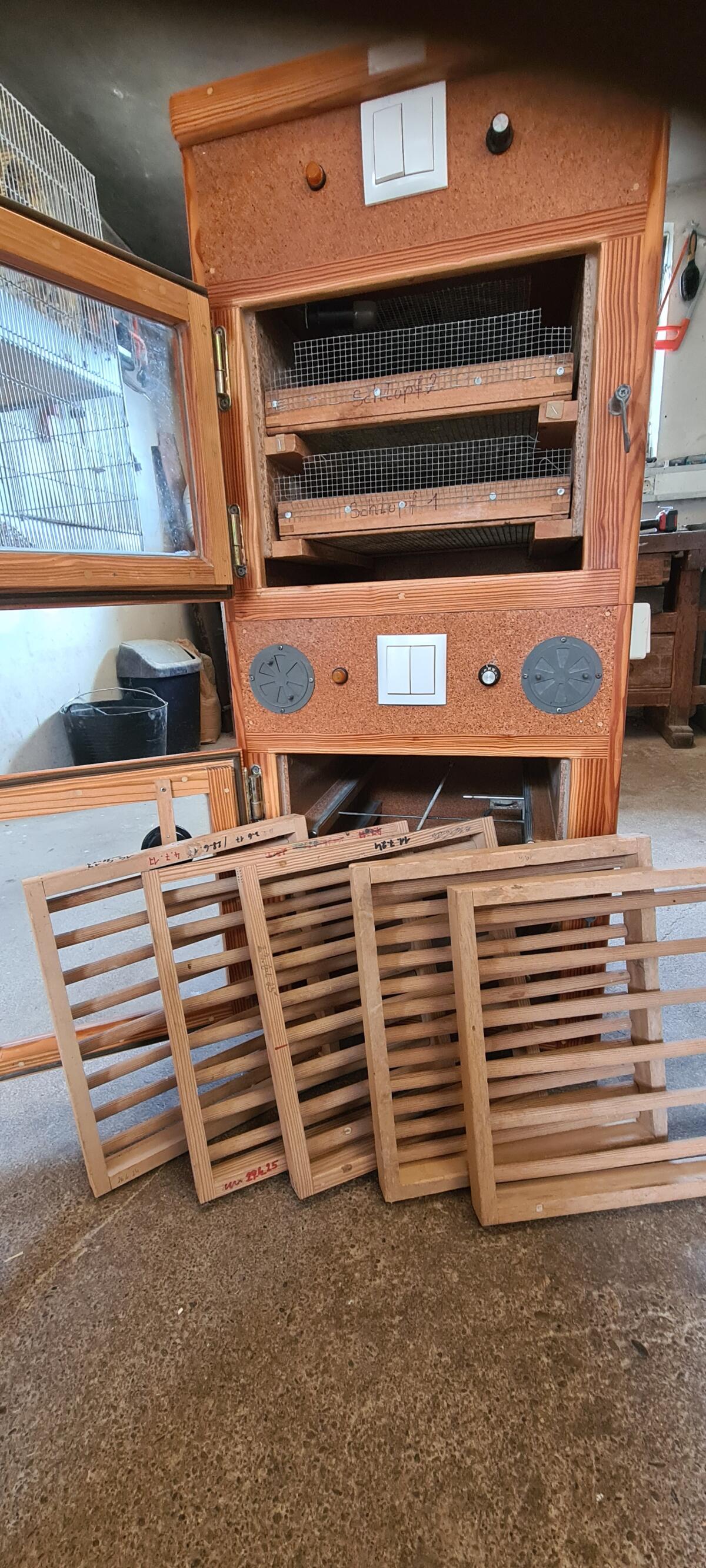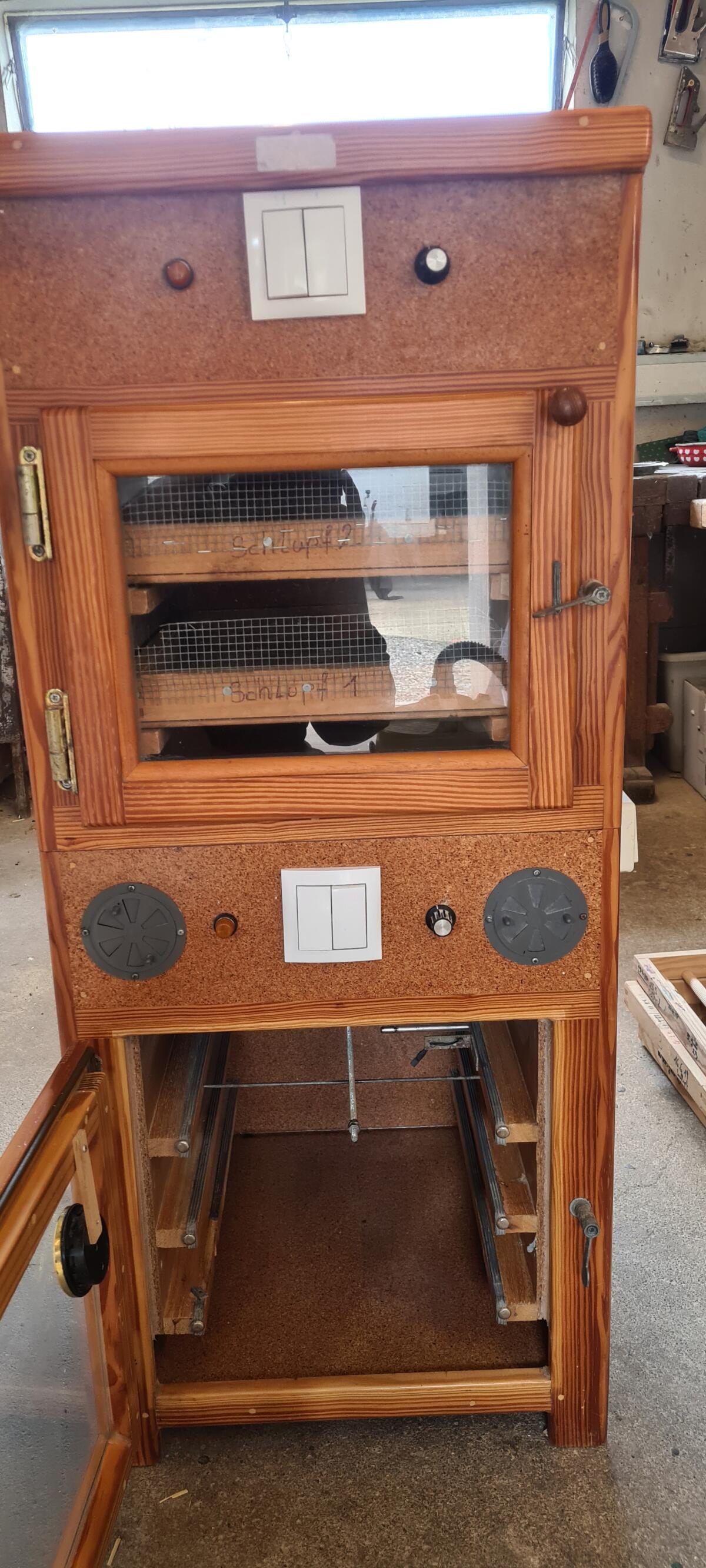 Verkaufe einen Hemmel Kombi Brutapparat für ca. insgesamt 160-180 Zwerghuhneier. Wendehorden für Hühner, Gänse, Fasan, Wachtel usw. sind mit dabei. Zwei Schlupfhorden sind natürlich im Preis inbegriffen. Der Brutapparat verfügt über eine vollautomatische Wendung.