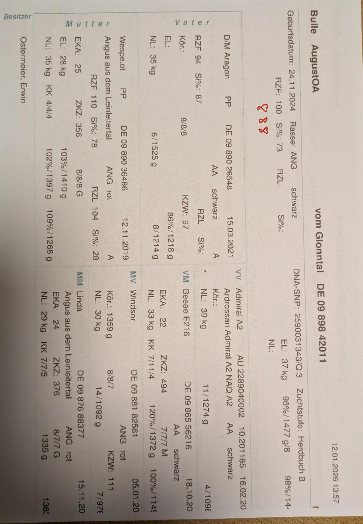 DA Bulle, gek. mit 3x8, 14 Mon., top abgesicherte Genetik (dritter 3x8er Bulle in Serie aus der Mutter). Rotfaktor. Kein Bio. Bei München.