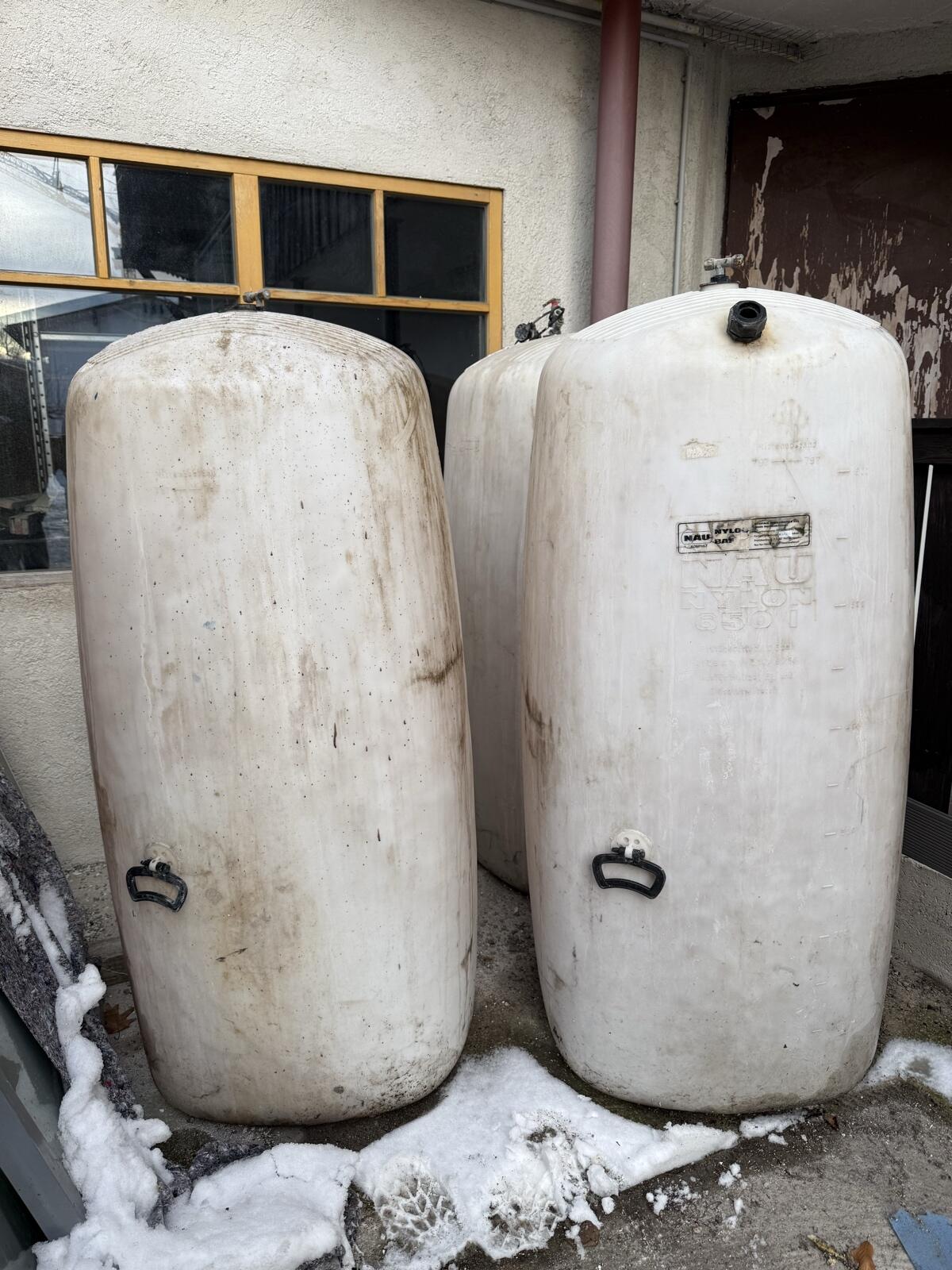 Nau Nylon Heizöl-/Dieseltank, 650 l Fassungsvermögen, 3 Stk., war mit Heizöl befüllt, keine Risse oder Beschädigungen. Preis pro Stk.