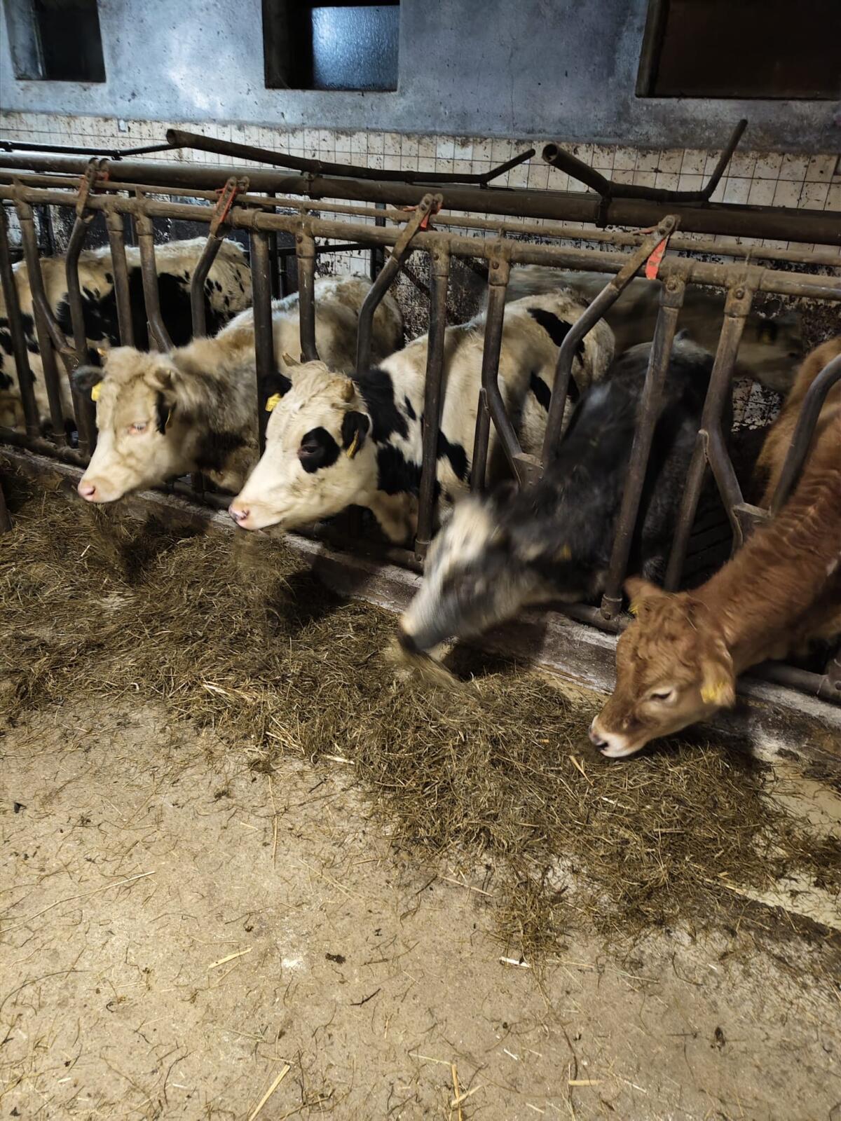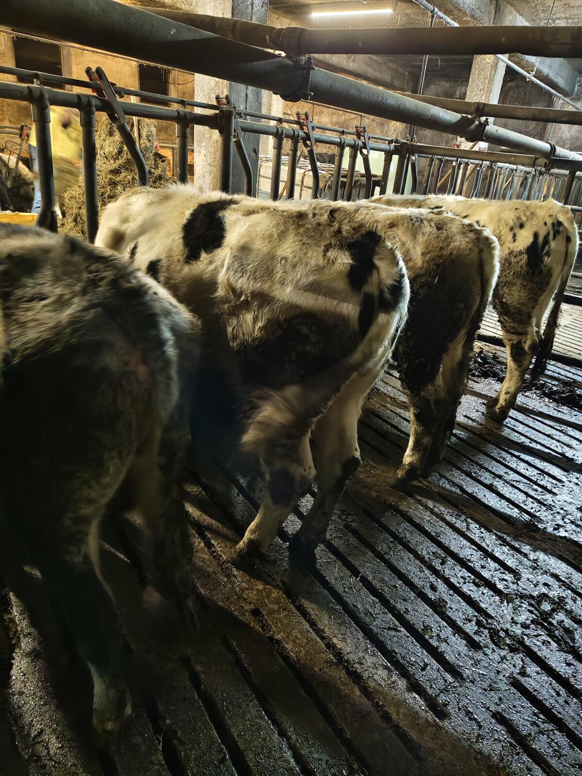 6 Einstellkalbinnen, WB x FL, FL x LI, zu verkaufen, ca. 300 kg. Standort Sinabelkirchen/Steiermark.