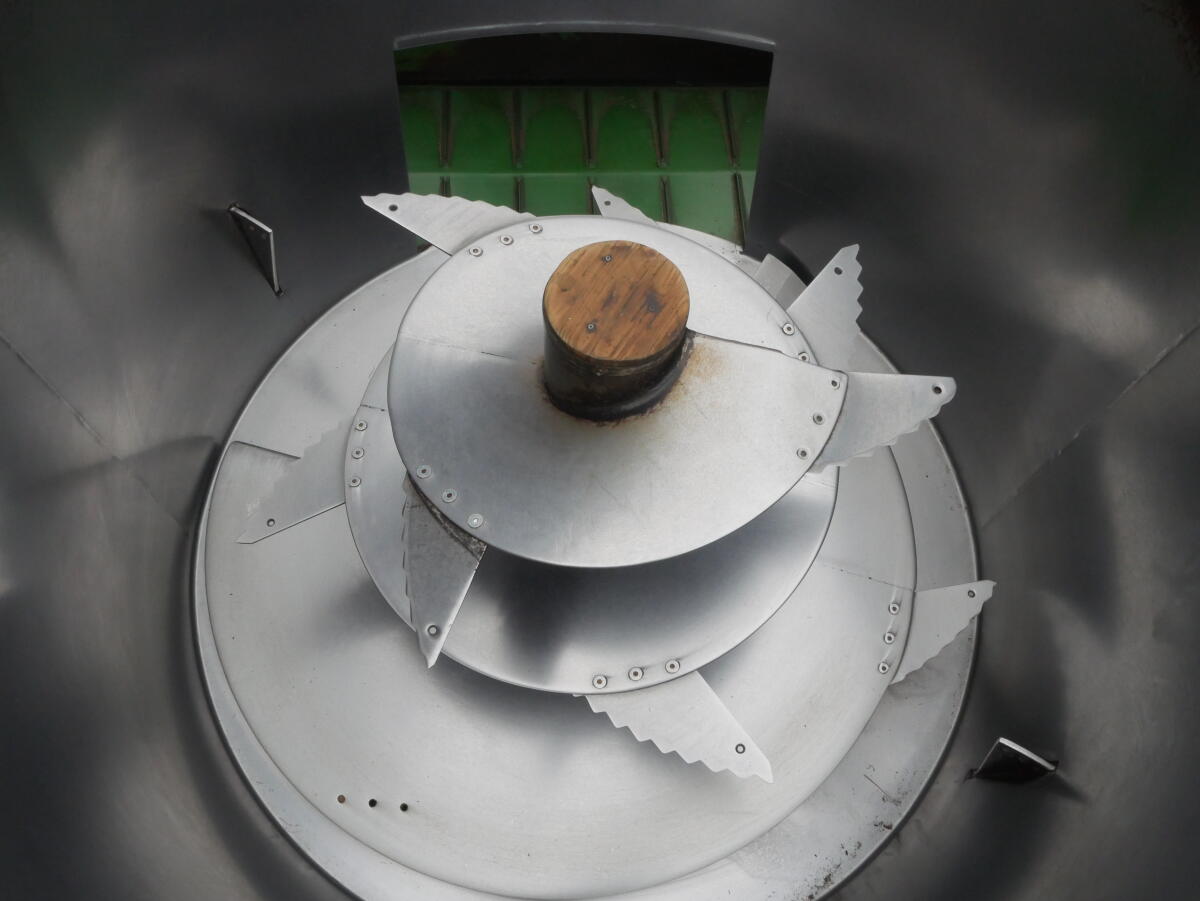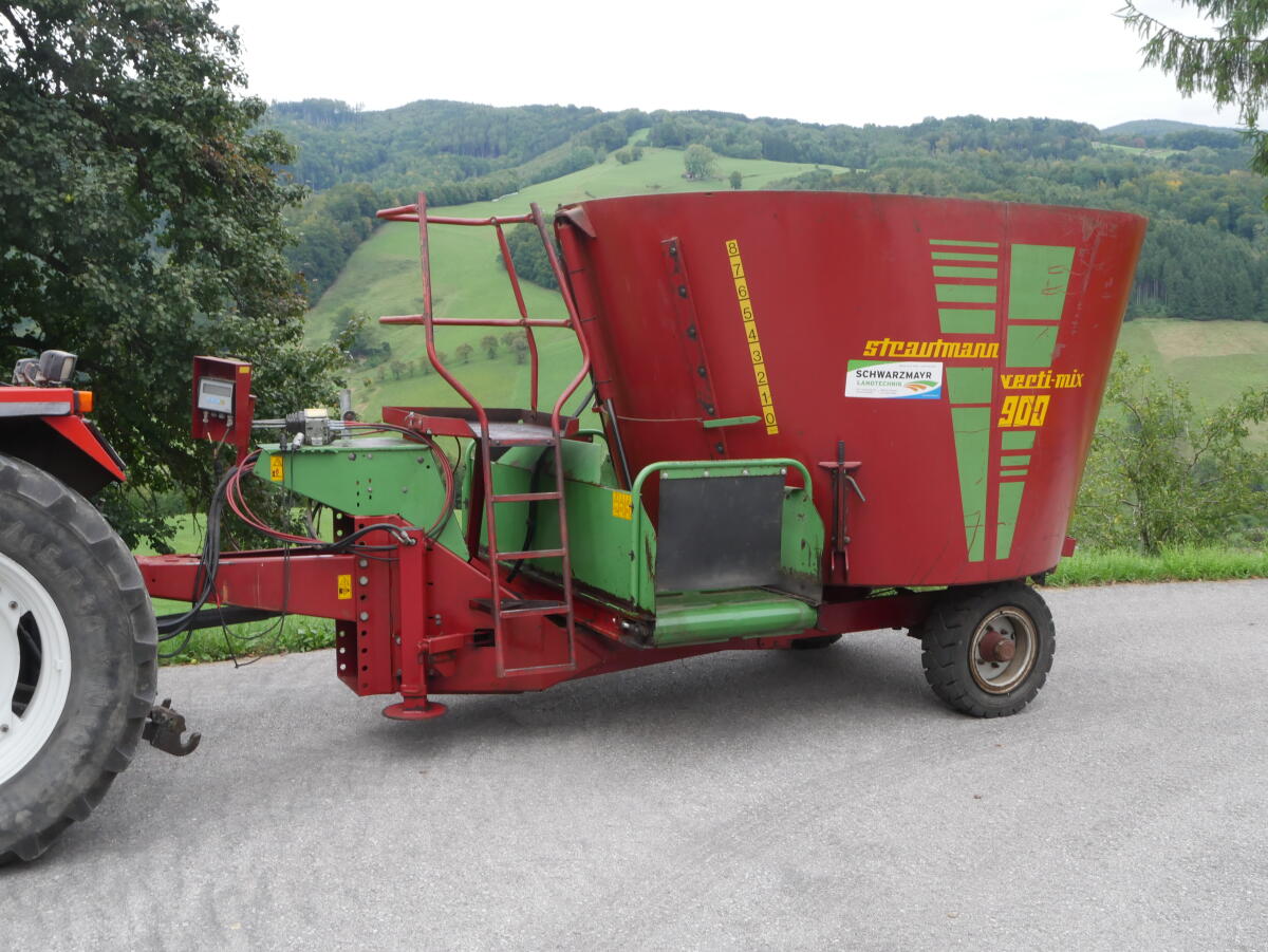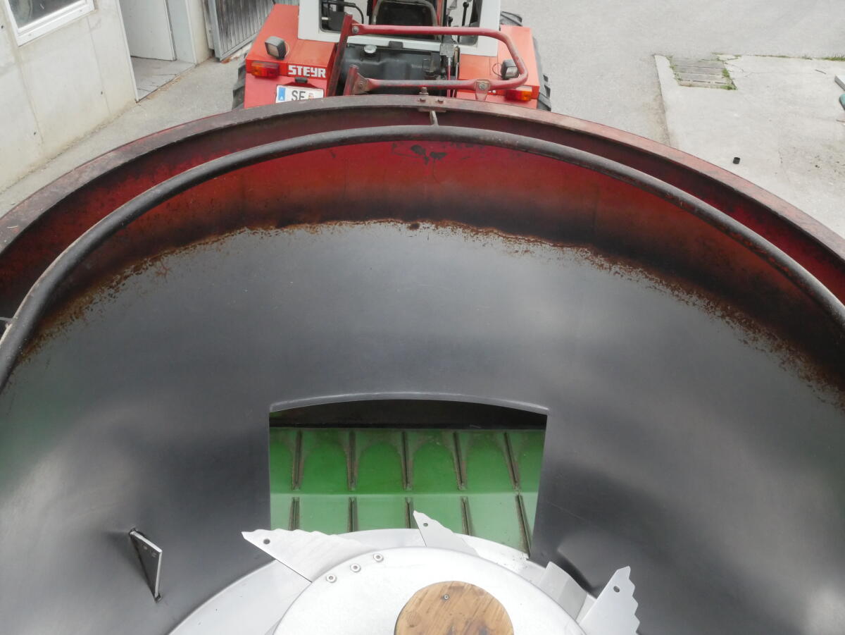 Vertimix 900 (Baugröße wie 1.251), Bj. 2002, 9 m³ Behälter, Förderband 2,27 m, hydr. Stützfuß, hydr. Bremse, Schaltgetriebe, Waage, Bereifung 250/15, Maschinenhöhe 2,55 m, Gelenkwelle. Triebling und Tellerrad vor 2 Jahren getauscht.