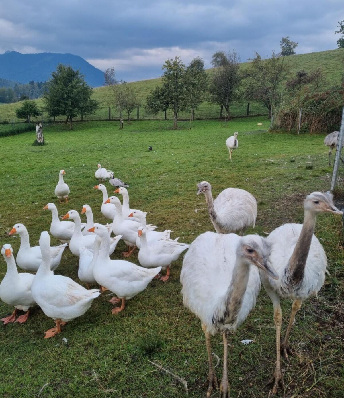 7 Monate alte Weidegänse aus Freilandhaltung, sind sehr zahm und laufen mit anderen Tieren.