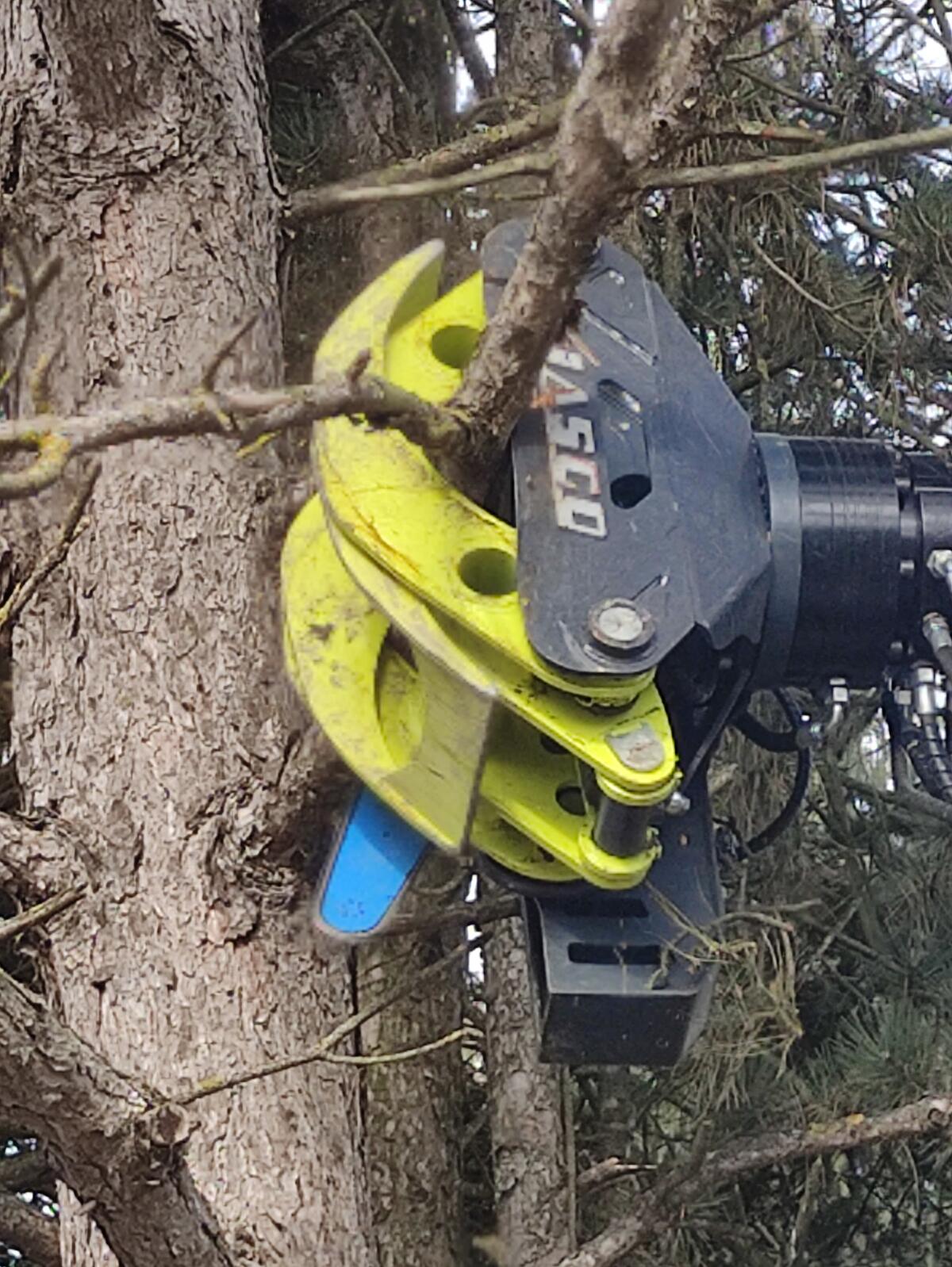 Harvestersäge mit hydr. Schwenkwerk, Schwertlänge 75 cm, aufgebaut auf Holzzange LA1200 HZ mit Öffnungsweite ca. 1.200 mm, max. Sägedm. 56 cm, maximaler Betriebsdruck: 230 bar, empfohlene Literleistung 30-50 l/min, Kettengeschwindigkeit bis zu 20,5 m/s, verschiedene Größen erhältlich.