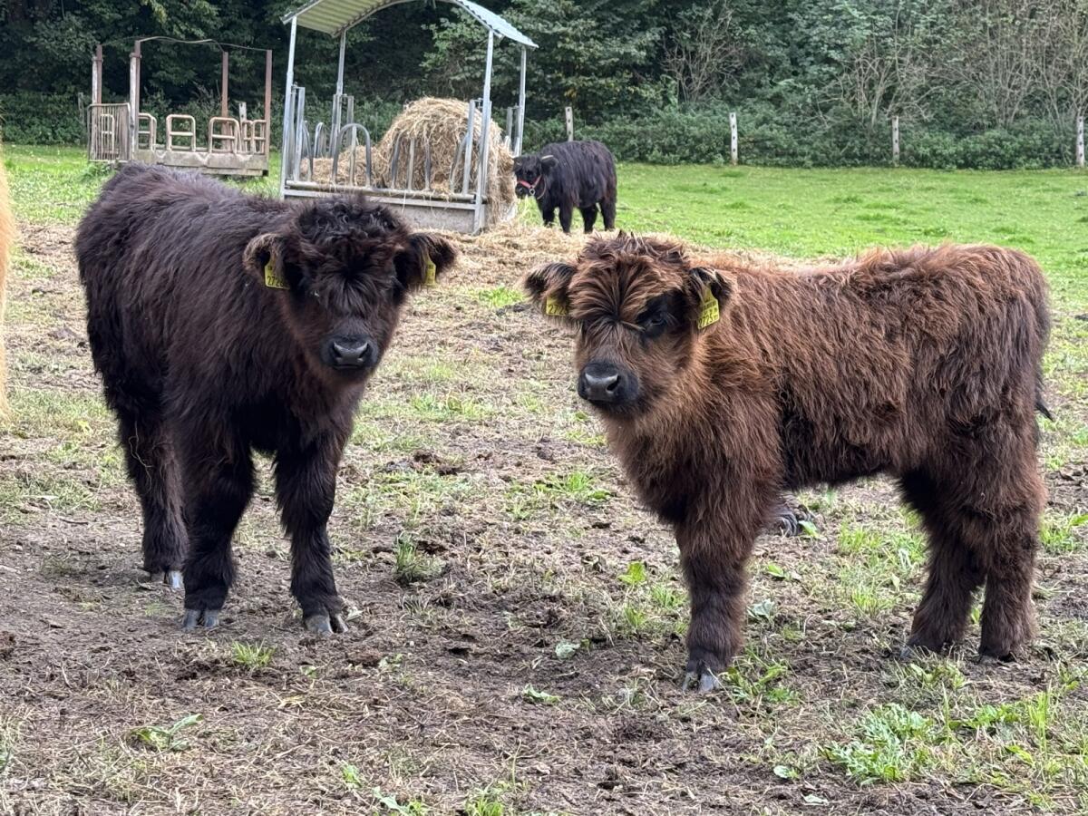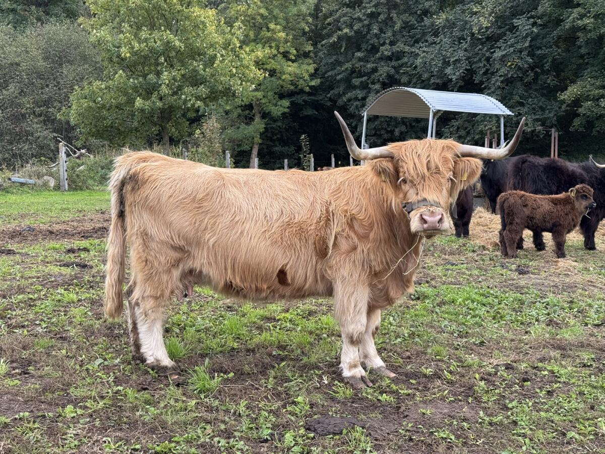 Hochlandrinder Kühe in schwarz (2017) und gelb (2018) zu verkaufen. Cosima von Haburg 29.4.2017 (schwarz) mit Kalb Calluna von Ortenburg 19.8.2025. (schwarz). Ailsa 11th of Craigowmill 2.4.2018 (gelb) mit Kalb Aila von Ortenburg 14.8.2025. (schwarz, am Foto das rötliche). Kühe können auf Wunsch jederzeit wieder belegt werden! Näheres bitte melden oder noch besser vor Ort bei einem Weiderundgang!