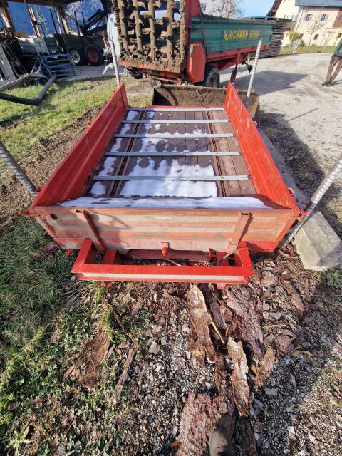 Verkaufe Anhänger mit Holzwänden, Eisenplateau, Handkurbel zum Kippen.
