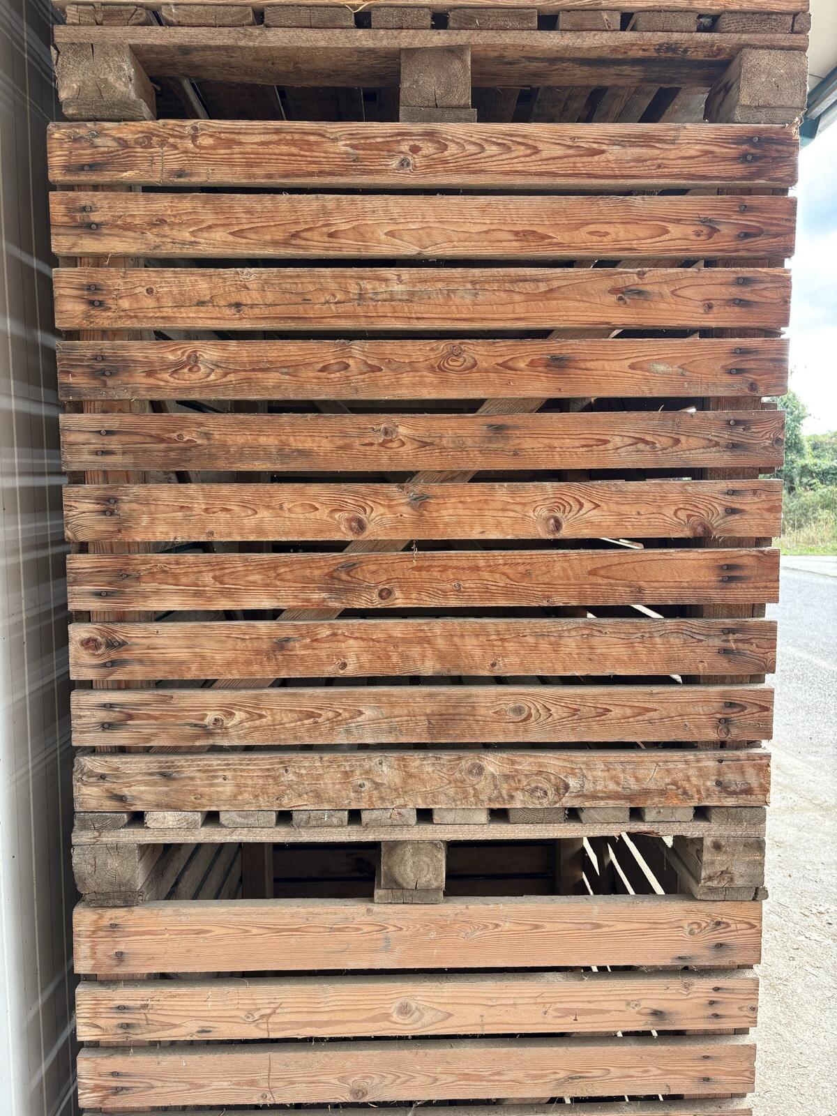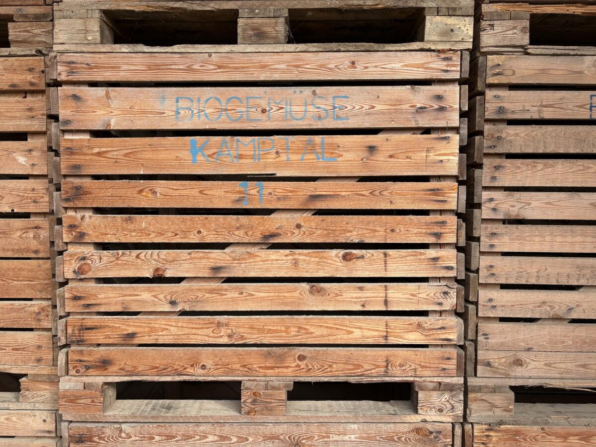 1,2 m breit, 1,0 m tief und 1,1 m hoch, für Kartoffeln, Zwiebeln oder sonstiges Gemüse, von allen Seiten stapelbar wie eine Palette. 30 Stk. sofort verfügbar. Für Bioware! Unter Dach gelagert.