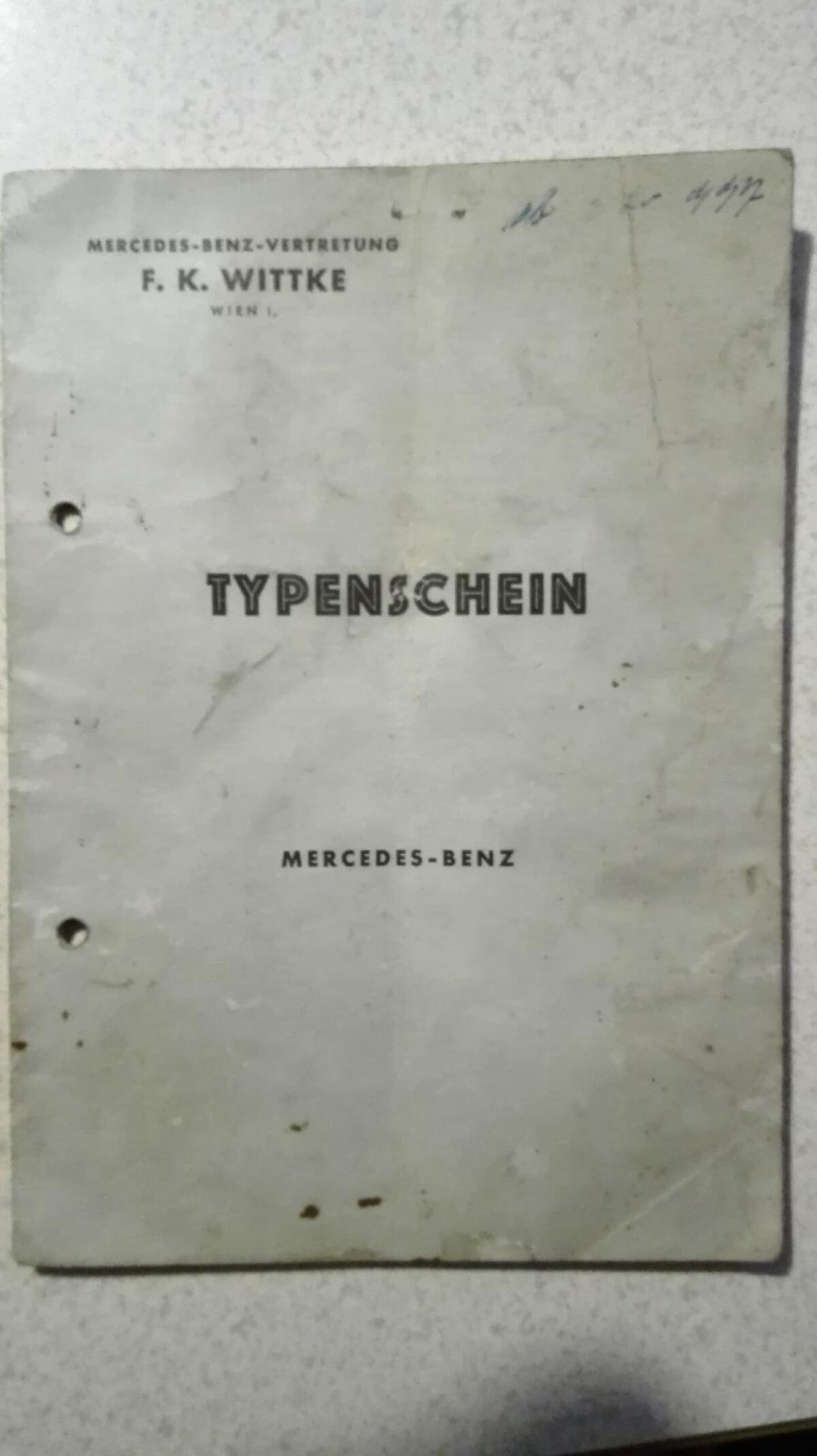 Konvolut an Typenscheinen, Betriebsanleitung und Ersatzteilliste. Typenschein: Mercedes-Benz Typ 180 D, 43 PS, Bj. 1957. Betriebsanleitungen: Opel Rekord, Caravan, Bj. 1960. Ersatzteilliste: Motormäher Bucher K2. Gesamtpreis, auch einzeln abzugeben.