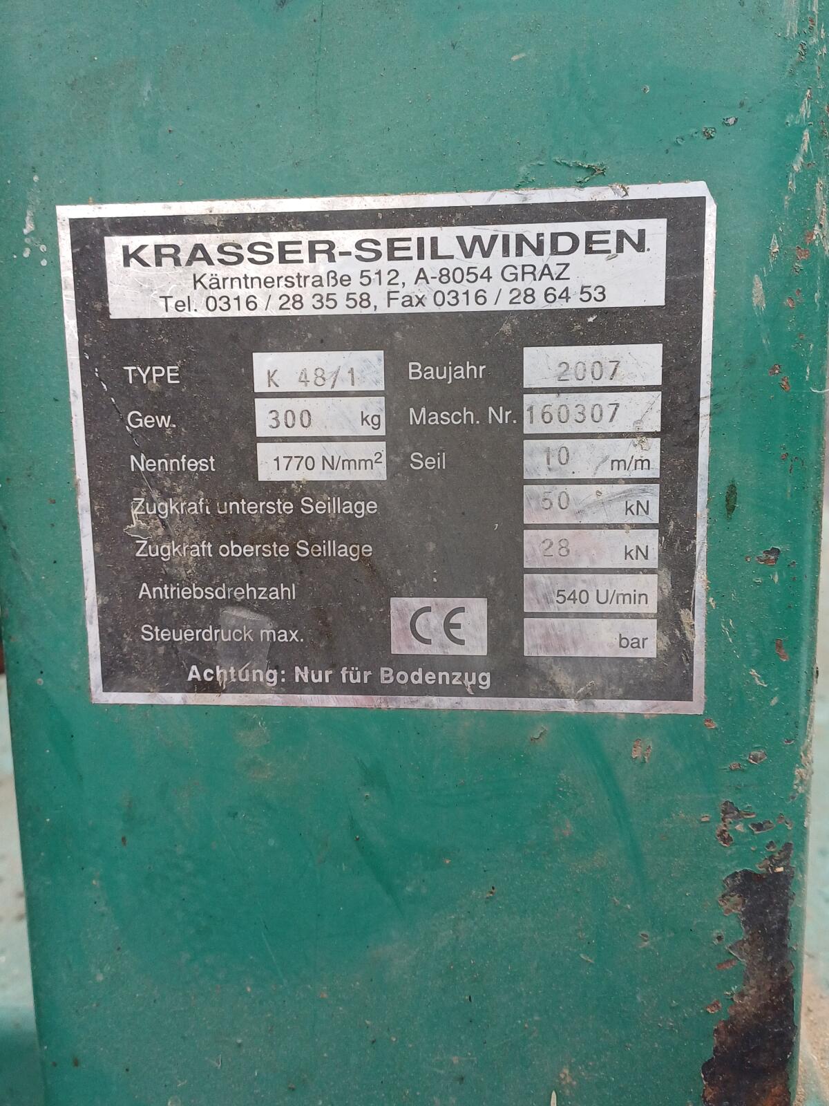 Verkaufe gut erhaltene Krasser Seilwinde, wenig benutzt, 10 mm Seil, ca. 80 m Seil.