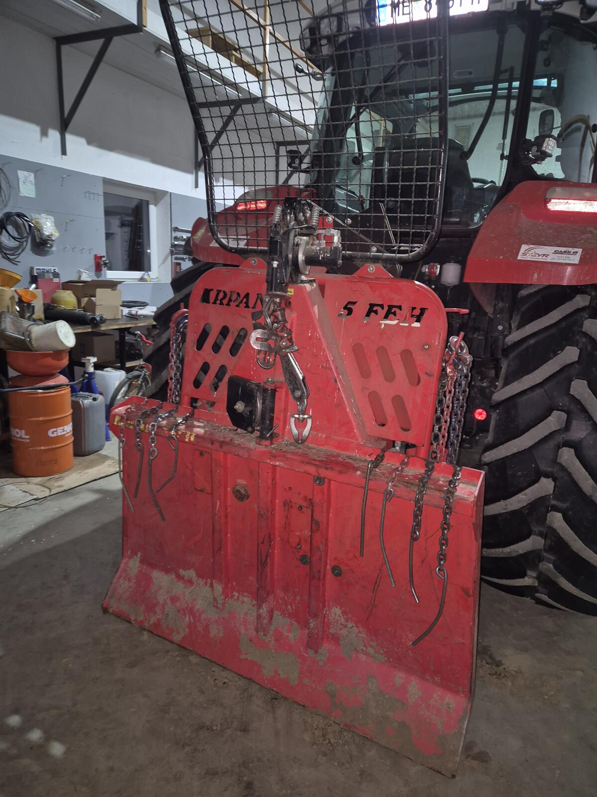 Seilwinde für Front- und Heckanbau mit zwei Zapfwellenstummeln für 1.000 und 540 U/min, Seilausstoß mit hydr. verstellbarer Geschwindigkeit, Schildbreite 1,5 m, Elka Funkfernsteuerung, Seil ist im Jan. 2026 neu gekommen (90 m lang und 11 mm hochverdichtetes Stahlseil), Lagerung und Kettenantrieb wurden 2018 erneuert, Bj. 2014.