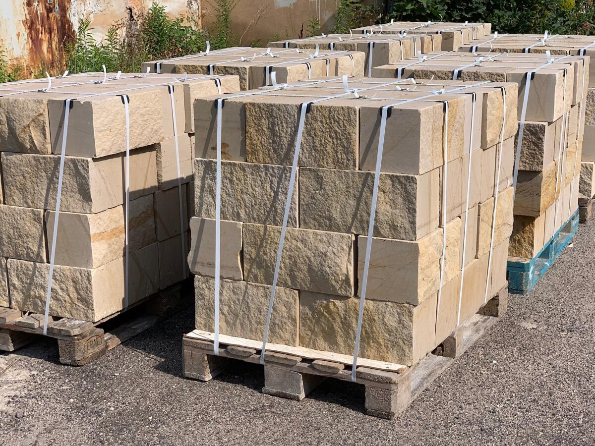 Mauersteine 4 Seiten gesägt aus Sandstein, Mauersteine, 20 x 20 x 40 cm, ca. 36 kg, 1 Pal./40 Stk., Preis/Stk.: € 13,80, Mauersteine 10 x 20 x 40 cm, ca. 18 kg, 1 Pal./80 Stk., Preis/Stk.: € 9,90, Mauersteine 15 x 20 x 40 cm, ca. 20 kg, 1 Pal./50 Stk., Preis/Stk.: € 11,88. Farbwahl des Steins: beige-gelb (Foto 1-6) oder mit lila Verfärbungen (Foto 6-13). Auch in anderen Maßen erhältlich, z. B. 25 x 25 x 40, 30 x 30 x 60-120, 40 x 40 x 60-120, etc. Um Ihnen ein Angebot zu erstellen, schreiben Sie uns bitte: Menge, die Sie benötigen (m² Mauersichtfläche oder Stückzahl), PLZ des Lieferortes. Wir liefern Österreich und Deutschlandweit.