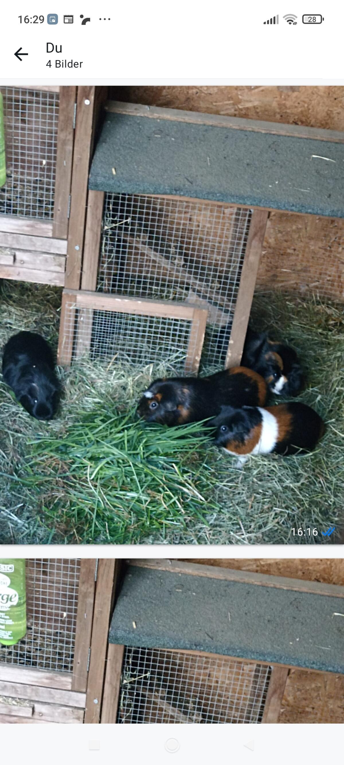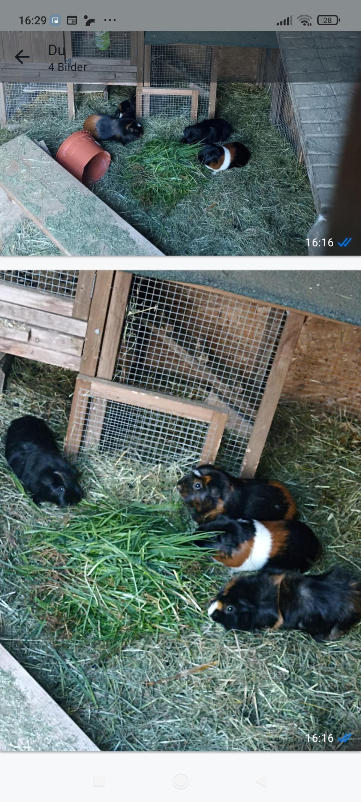 4 süße Meerschweinchen zu verschenken. Mutter mit ihren 3 Kindern, 1 davon ein Männchen (kastriert). Nur als Familie abzugeben. Sind gewohnt auch im Winter draußen zu sein (winterdichter Stall). Ca. 3,5 Jahre alt. Bezirk Liezen.