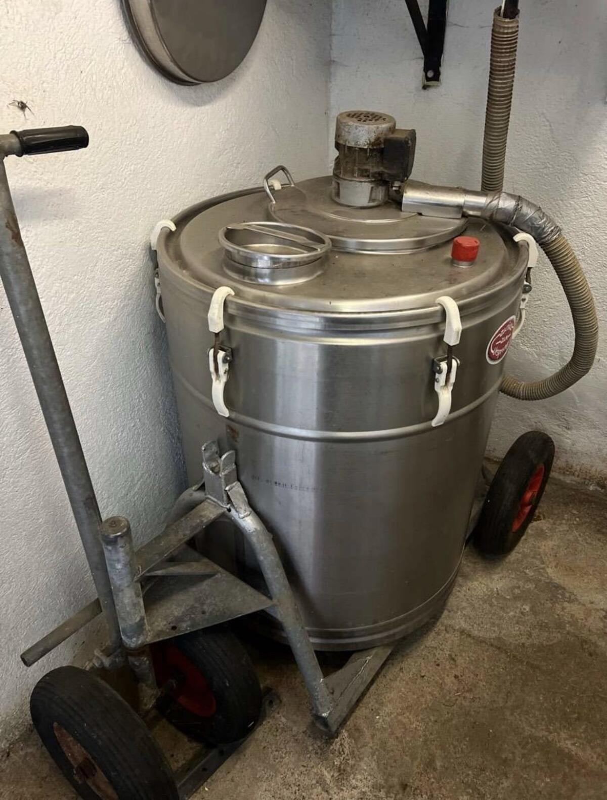 Milchtank 250 l mit Kühlung und Transportwagen, Sumpf.