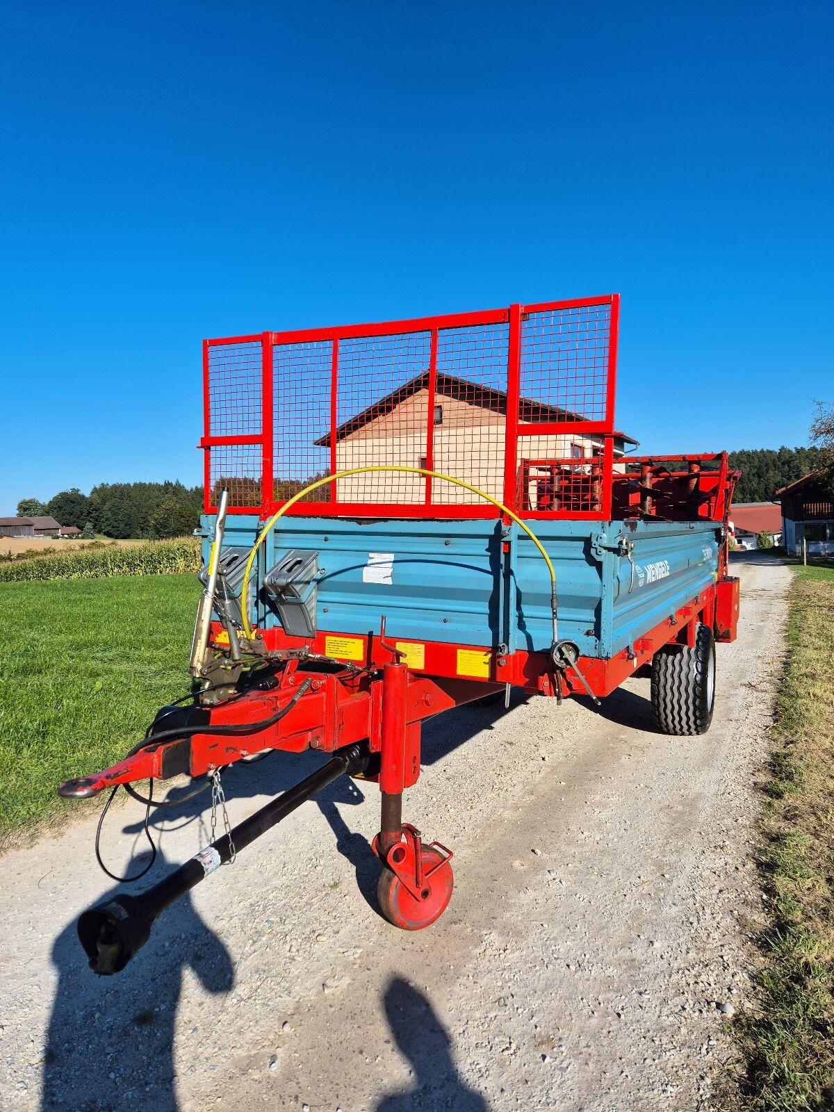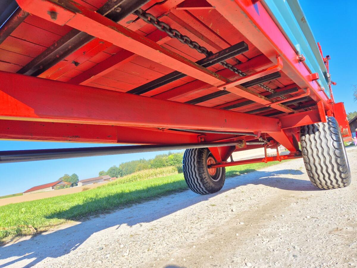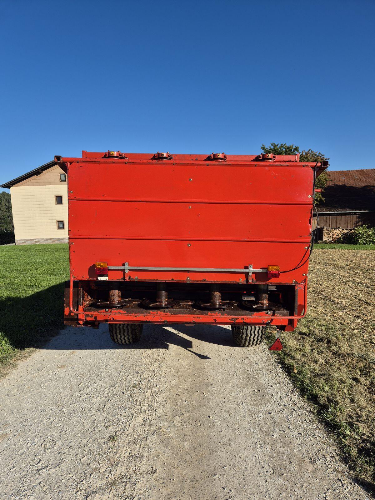 Mengele Miststreuer im super gepflegten Zustand, nichts durchgerostet, original Zustand. Abgeschmiert und sofort einsatzbereit. Zul. Ges. Gew. 5.600 kg. Rückmatic Bremse, dadurch kann man wie bei einem Autoanhänger einfach rückwärts fahren. Hydraulische Heckklappe, dadurch kein Absteigen zum Deckel öffnen mehr nötig. Ohne Heckklappe laut StVZO offiziell keine Straßenfahrt erlaubt. Feinstreuwerk mit 4 stehenden Walzen, super Streubild. Breite Reifen für eine geringere Bodenverdichtung, haben ein gutes Profil und halten die Luft. Mit Heckbordwand. Maße: Gesamtlänge 6,70 m, Gesamthöhe 2,25 m, Länge Brücke 4,50 m, Breite Brücke innen 1,88 m, Gesamtbreite 2,16 m. Transport könnte organisiert werden.