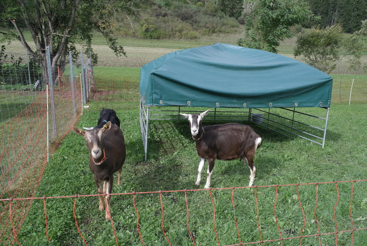 Wir verkaufen zwei mobile Weideunterstände für Ziegen oder Schafe, 2,75 x 2,75 m, bietet Schutz vor Regen, Wind und Sonne, werkzeugloser Aufbau, robuste LKW-Plane. Preis je Unterstand auf Anfrage.