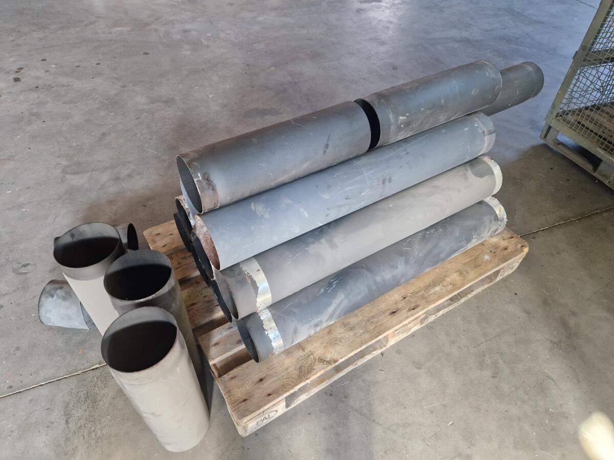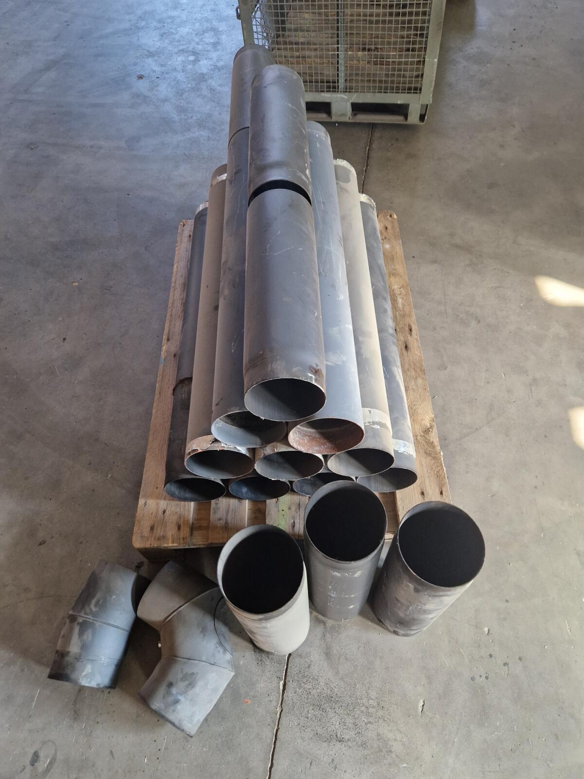 Ofenrohre, massive Qualität, 150 Dm., 2 mm Wandstärke, 1 Jahr alt, 9 Stk. mit 1 m, 6 Stk. mit 0,5 m, 1 x 90° Bogen mit Putztür, 1 x 15° Bogen, Gesamt € 120,-, (Neupreis waren € 450,-).