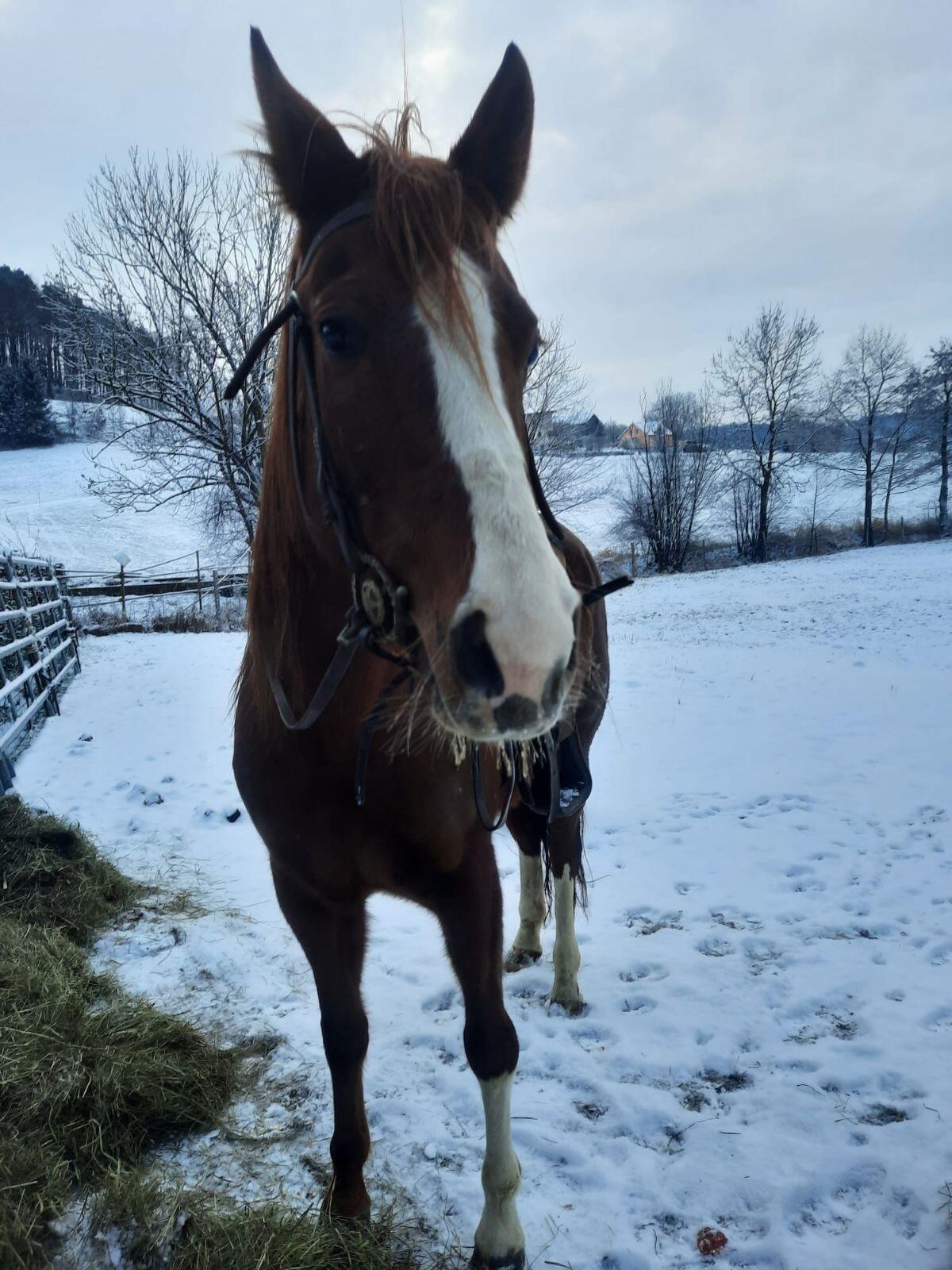 Super liebe Quarter Horse Stute, 8 Jahre alt, sucht im Auftrag ein neues Zuhause als Freizeit-, Beistell- oder Zuchtstute, da sie vorne eine leichte Fehlstellung hat. Die Kleine wird mit komplettem Zubehör (Sattel, Zaum) verkauft.