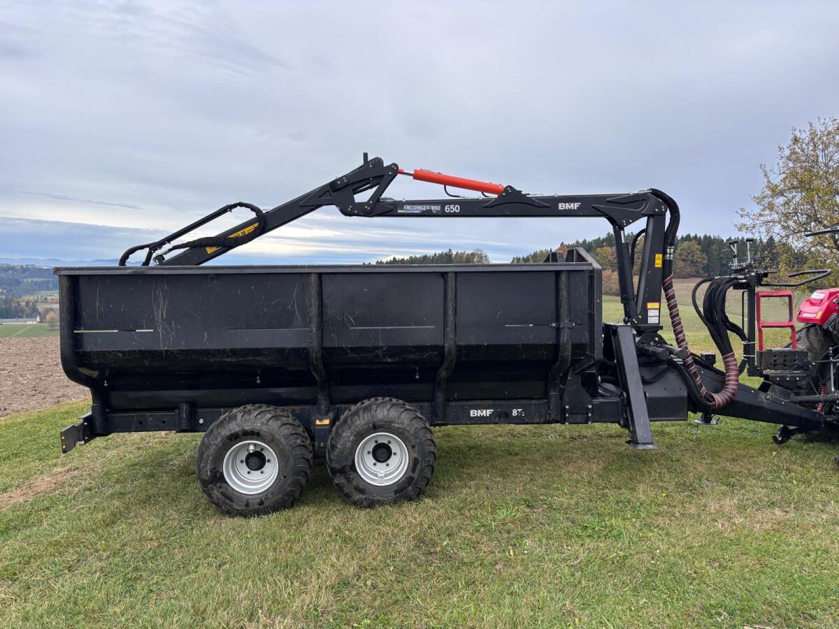 Wenig benutzter Rückewagen mit 8 t Ladekapazität und 6,5 m Kran. 4 Rungenpaare, 5 Rungenbänke, ausziehbare Rahmenverlängerung. Hydraulische Bremse auf einer Achse mit 3-stufigem Druckregler zur Bremskrafteinstellung. Abnehmbare Astwanne, Deichsellenkung, Eigenölversorgung mit 100 l Tank, Weitwinkelgelenkwelle, bewegliche Beleuchtung. 2 Stk. Halterungen für Motorsägen, Zurrösen am Rahmen. Bereifung 400/60-15,5 14PR. Auch ein selbstgebauter Schalengreifer ist dabei. Man kann damit die Astwanne mit Sand, Erde oder Schotter beladen und abladen. Das funktioniert gut, weil der Schalengreifer genau in die Astwanne passt. Neu gekauft im Januar 2020. Verkauft wird er wegen Betriebsauflösung.