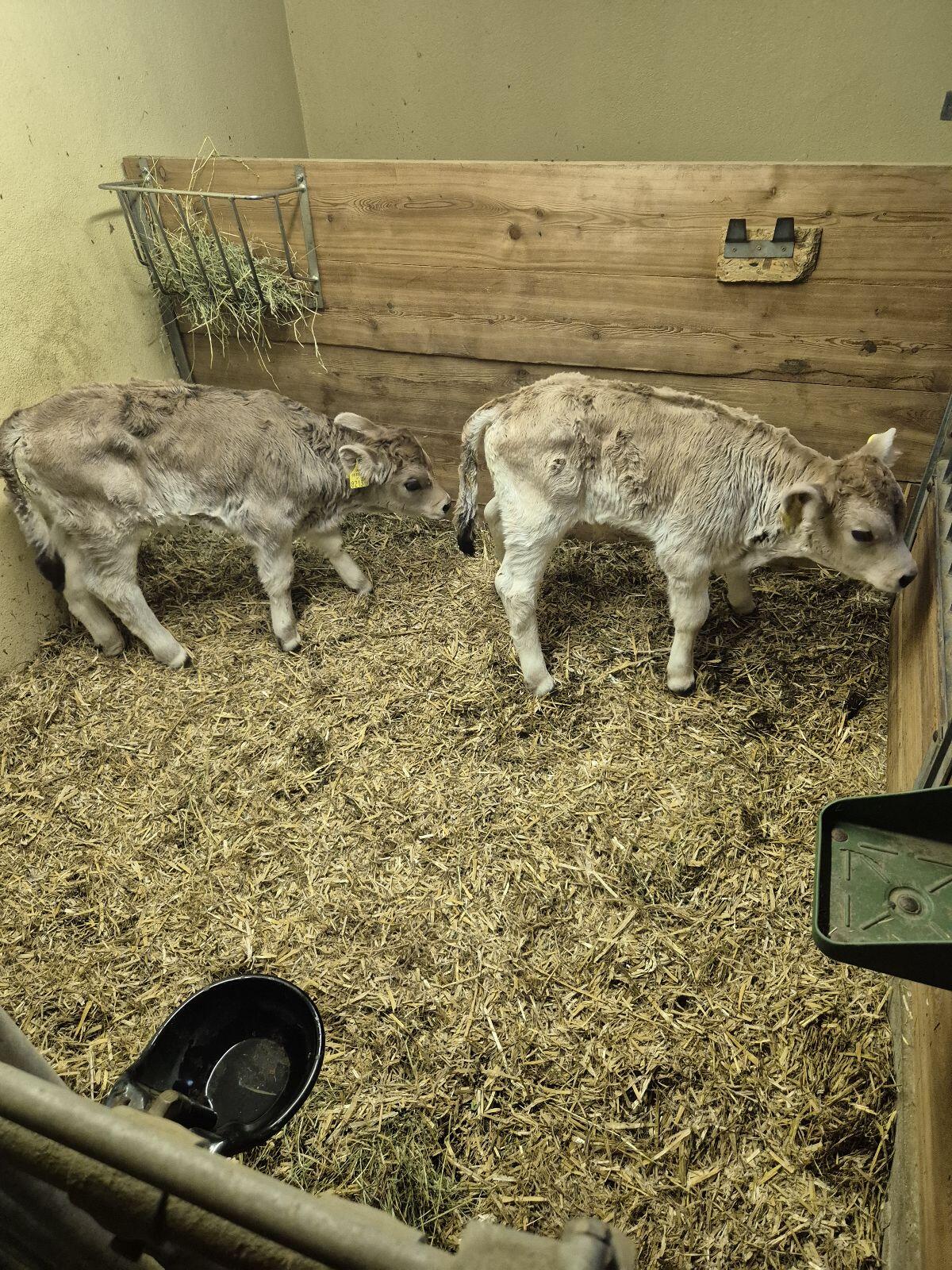 Verkaufe Hb Grauvieh Zwillingskälber, männlich und weiblich, vom Biobergbauern Heumilchbetrieb. Von sehr guter Milchkuh. Vater Alonso. 14 Tage alt. Förderbares Kalb. Auch einzeln abzugeben.