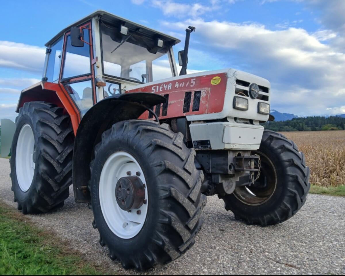 Steyr 8075 Allrad Traktor, Service neu, Motor, Getriebe Steyr, Achse ZF, Stg.: 1 ew, 1 dw, 1 DRL, Zähler steht, Wegezapfwelle und Motorzapfwelle, Oberlenker, Schiene, Zugmaul, LED Arbeitsscheinwerfer vorne, Bremsen gut, Bereifung gut, Beleuchtung funktioniert, Kabinendämmung, Fotos 06.10., Pickerl-Gutachten neu, wird bewegt.