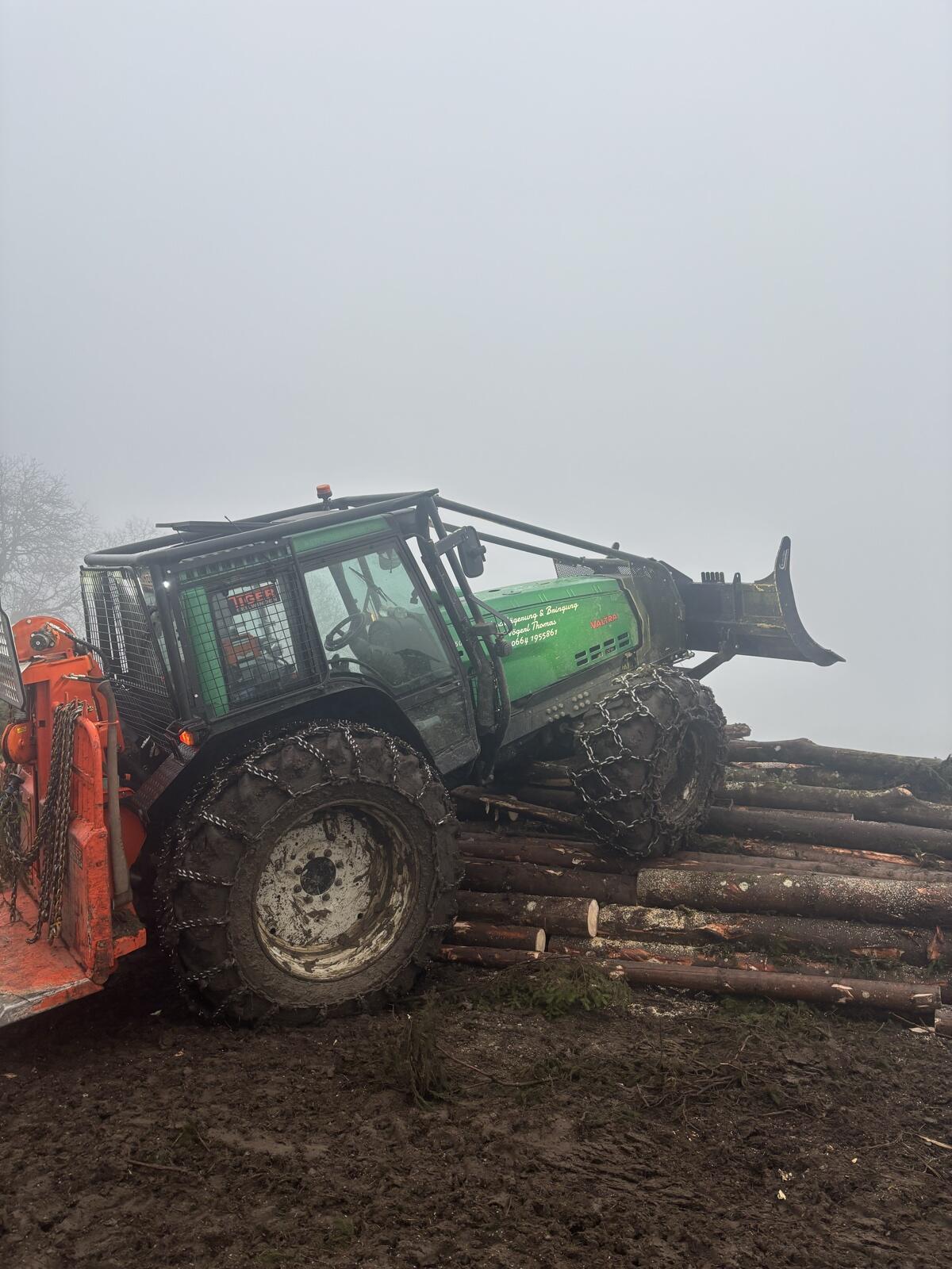 Valtra 8050, dem Alter entsprechender Zustand, voll einsatzbereit. Kein Servicestau. Komplett Forstverbau (Einzelgenehmigung). Forstreifen (Nokian vo./hi. Forstfelgen), Stachelketten vo. und hi., Netzketten vo. und hi., Schneepflugplatte etc. 16.000 h. Evt. mit Polterschild, Preis verhandelbar.