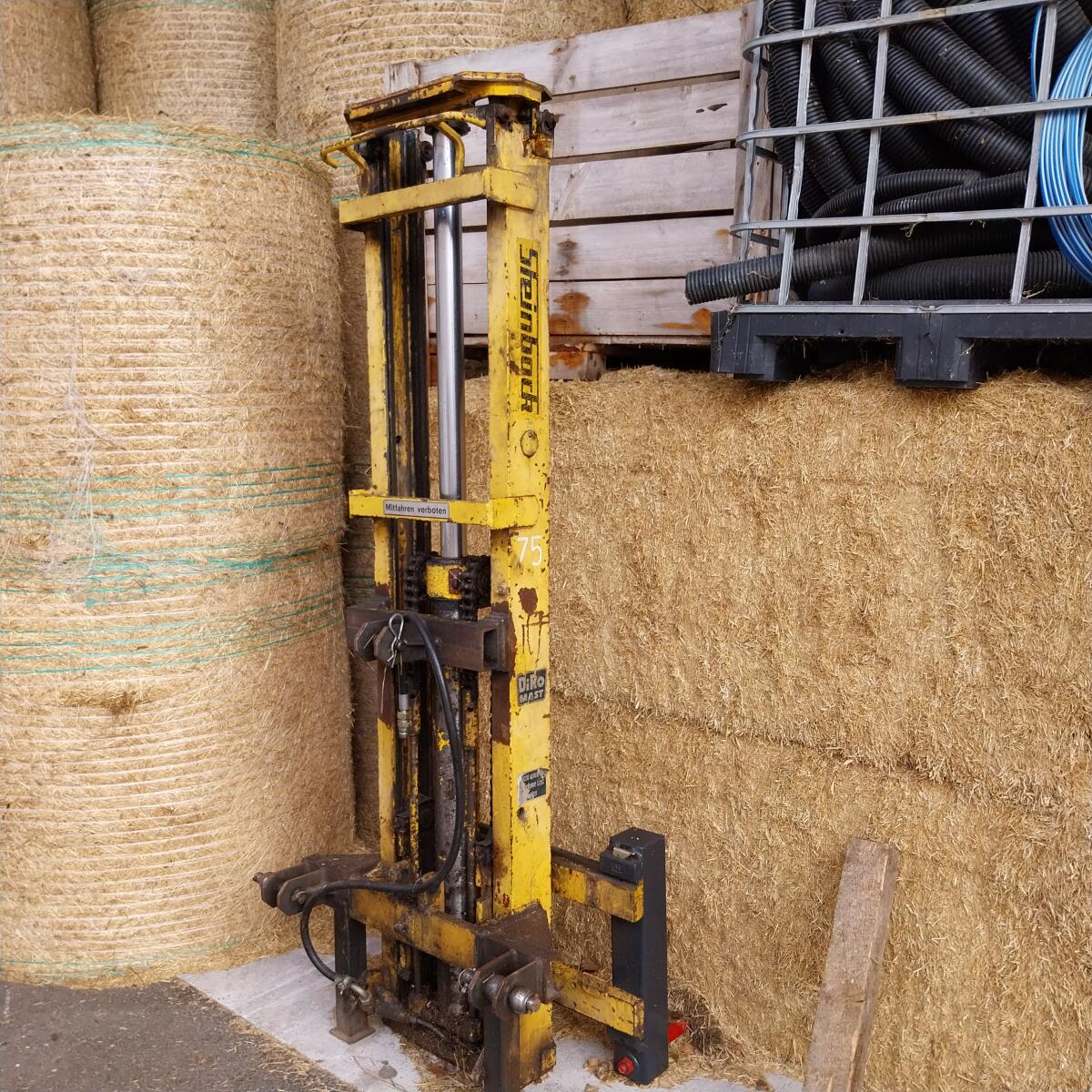 Verkaufe Traktorhubgerüst der Marke Steinbock. Hubhöhe 4,5 m, Freihub, Gabellänge 1,15 m, Ballenspieße sind auch abzugeben zum Aufpreis € 200,-. Nur einmal benutzt.