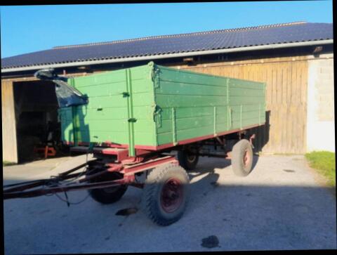 Fuhrmann Zweiachszweiseitenkipper, Eigengewicht 1.840 kg, Nutzlast 4.500 kg. Plateauinnenmaß 1,83 m mal 3,83 m, Bordwandhöhe 90 cm (50 cm plus 40 cm). Auf der rechten Seite befindet sich ein Getreideschieber. Die Bordwände sind abklappbar. Beide Achsen sind mit Seilzug gebremst.