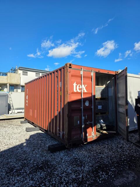 Doppelcontaineranlage mit den Außenmaßen von ca. 6x4, 8x2, 6 m, Außenisolierung 60 mm Mineralwolle, Dachisolierung 80 mm Mineralwolle, 1 Tür, 4 Fenster (Dreh/Kipp) und