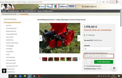 Kartoffelvollernter Wühlmaus 1033, Bunker vorhanden, Übergabe direkt in Großkisten (140x120), Verkauf wegen Aufgabe Kartoffelanbau, jährlich ca. 0, 80 ha geerntet, So