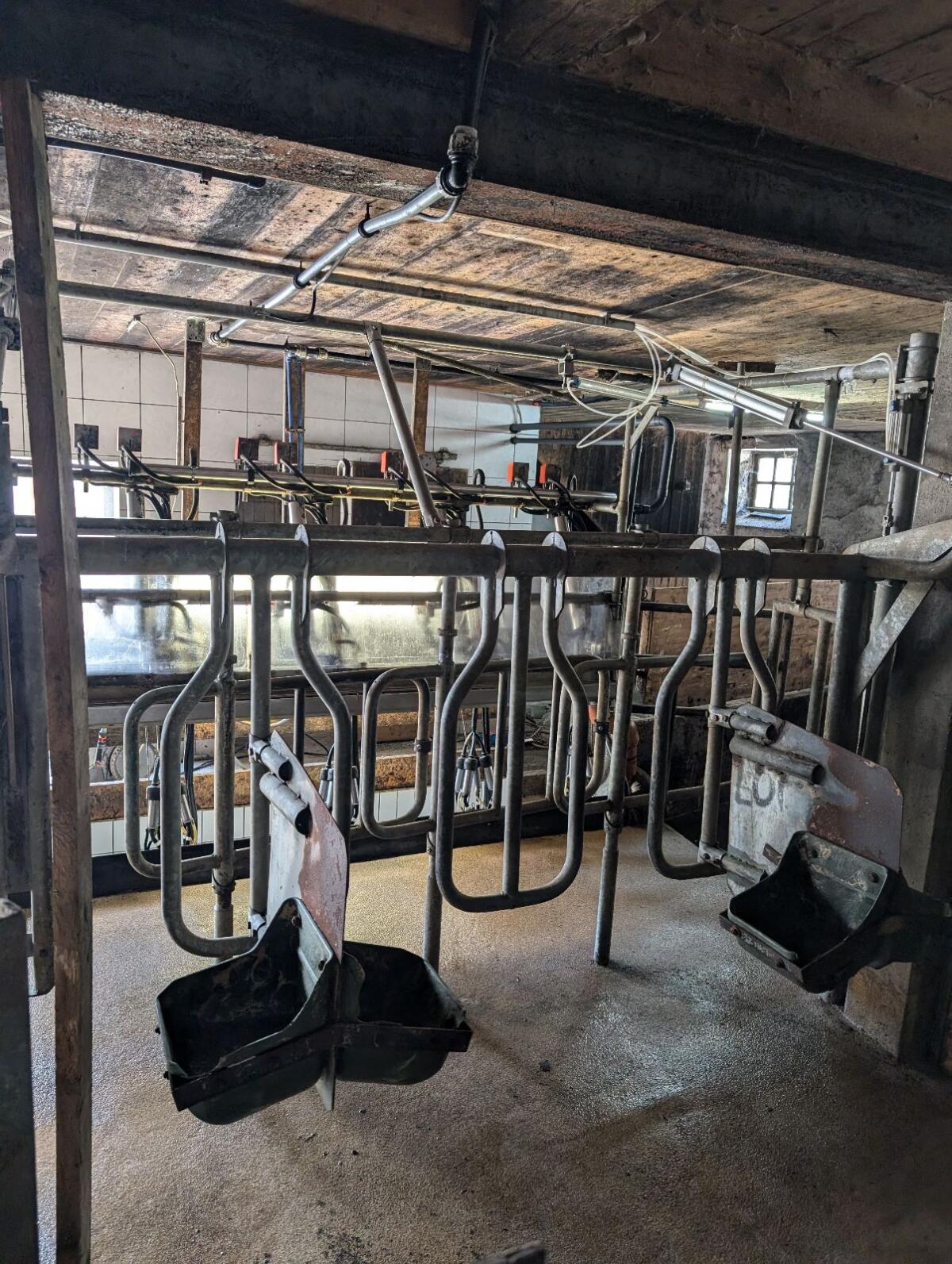 Verkaufe einen gut erhaltenen Tandem-Melkstand 1x3, abgebaut und jederzeit abholbereit. War 18 Jahre lang in Betrieb. Stable and yard equipment Milking equipment