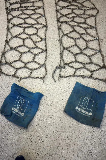 Ein Paar PEWAG Schneeketten Universal U 103 5Für Reifendimensionen:10.00-1210-1510.0/75-1510R-1510.0/75-15.3gebraucht, gut erhalten. Tractor equipment and