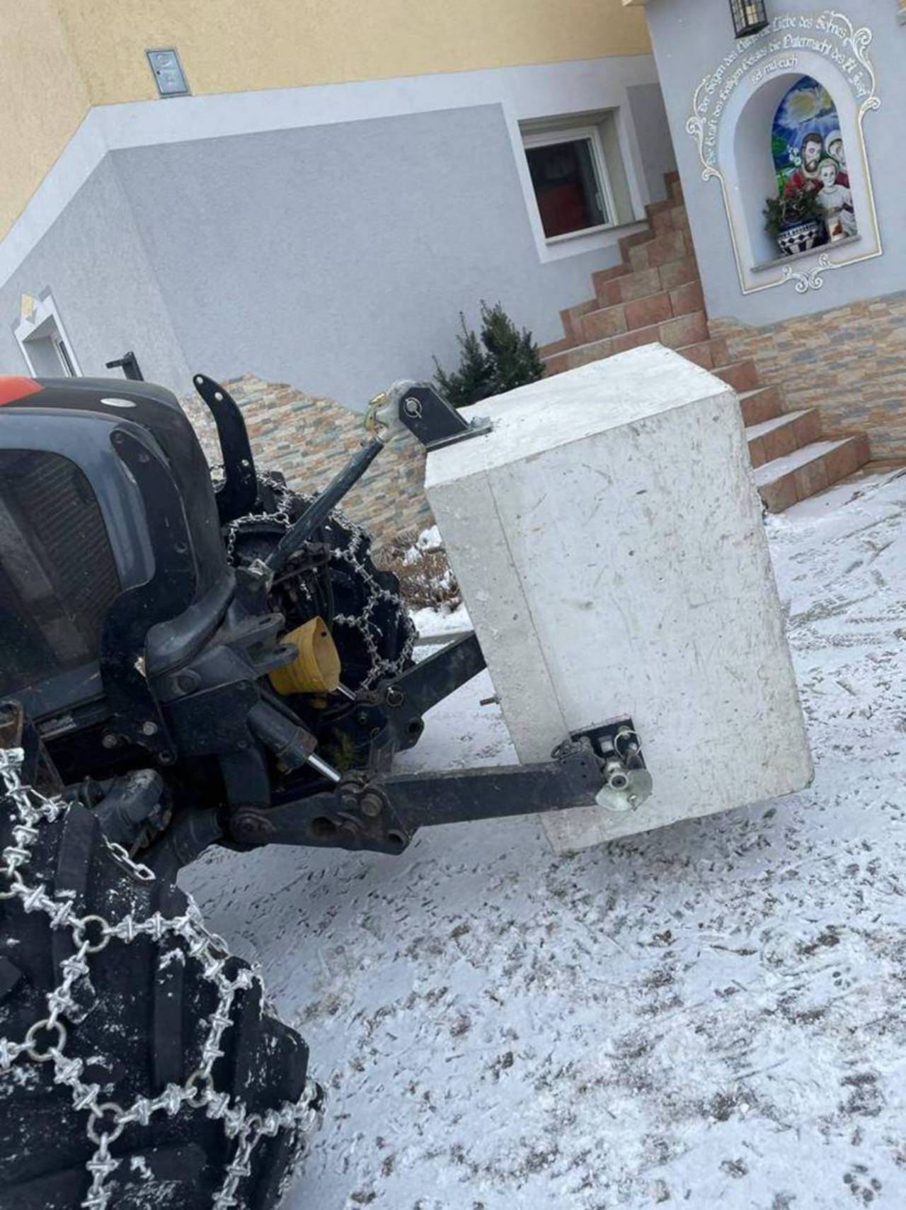 Verkaufe Beton-Blockgewicht adaptierbar 500 auf 1.000 kg ohne Anbaudreieck, keine Garantie oder Gewährleistung, bei Fragen einfach melden. Tractor equipment and acce