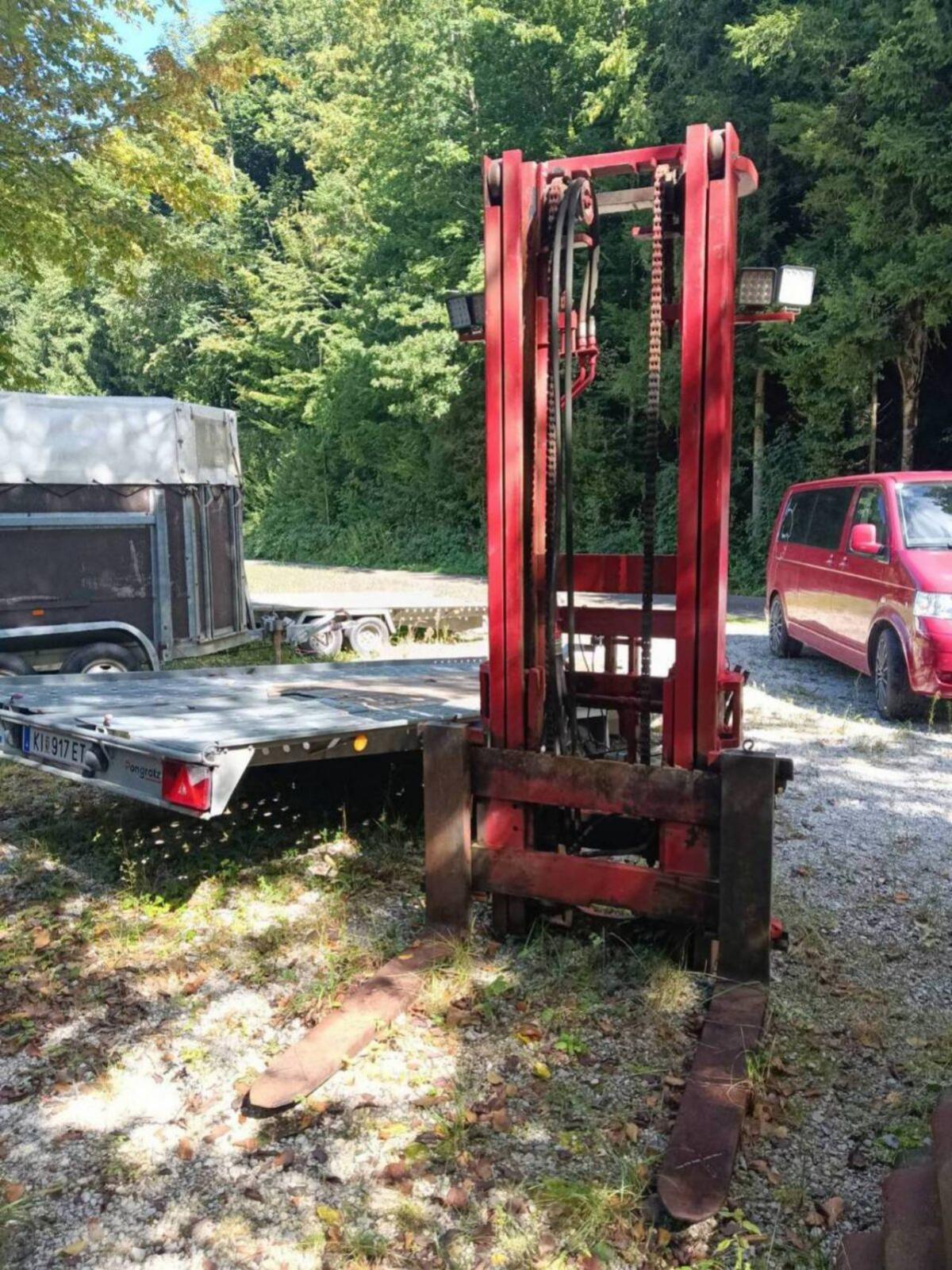Ca. 3, 5 m Hubhöhe. Ca. 1.000 kg. Funktionstüchtig, wird nicht mehr gebraucht. Standort 6083 Ellbögen. Tractor equipment and accessories Rear forklifts