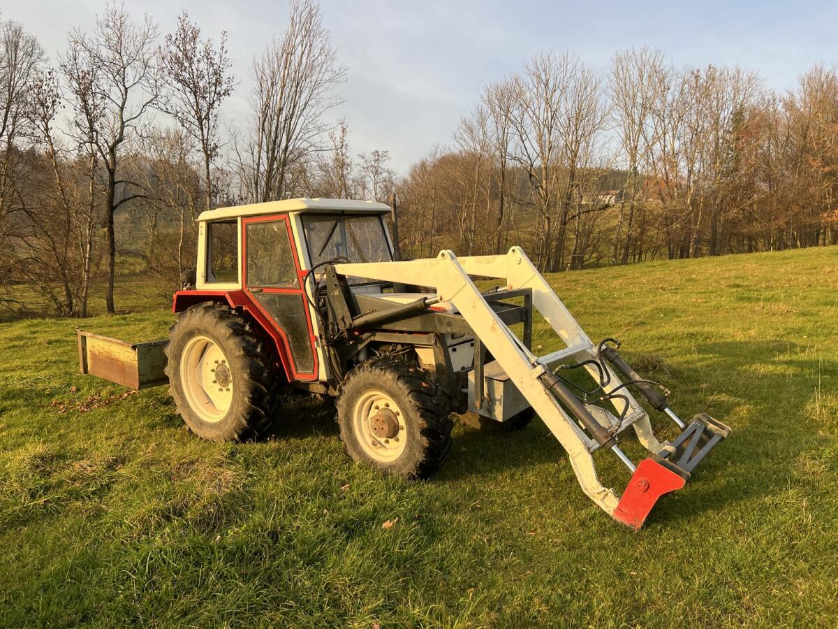 Traktor mit Gebrauchsspuren, funktioniert tadellos, Allrad. Zum Frontlader gehört eine Schaufel und Palettengabel. Bereifung neu. Ein Vorbesitzer. Er steht in PLZ 85
