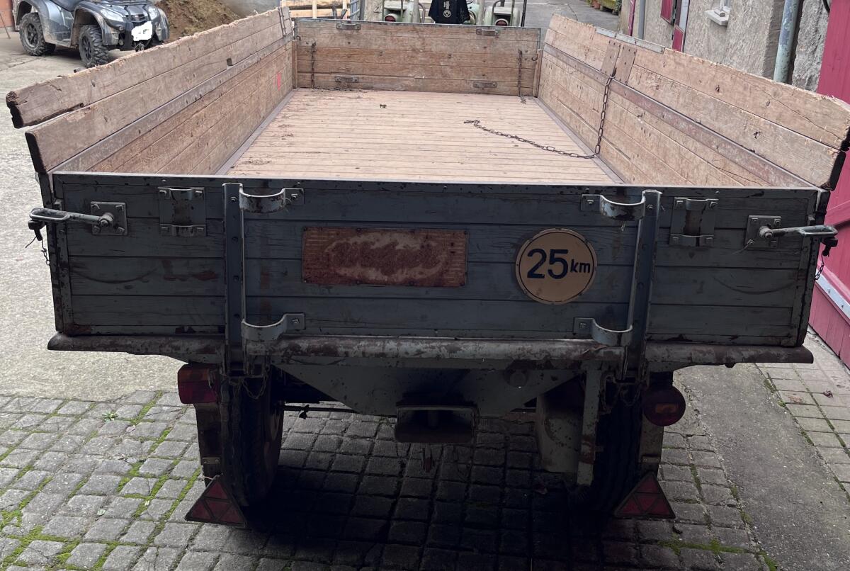 Guter Zustand, sofort einsatzbereit. Mit Aufstellbrettern wie abgebildet. Zulässiges Gesamtgewicht 4.400 kg. Auflaufbremse, leider keine Papiere mehr. Standort 97534