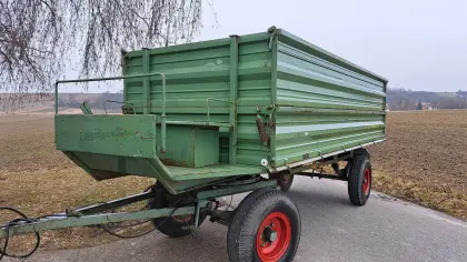 Verkaufe gut erhaltenen 10-12 t Anhänger, einfachwirkende Luftdruckbremse, 2-Seitenkipper. Preis VB. Trailers Dumpers