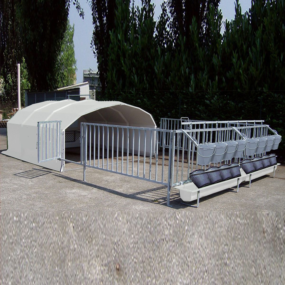 Verkaufe NEUES aZb Gruppenkälberiglu / Iglu Deluxe für 5 Kälber (GFK) inkl. feuerverzinkte Umzäunung, 5 Stk. Fanggitter, mit 5 Stk. Wassereimerhalter, mit 1 Stk. Sch