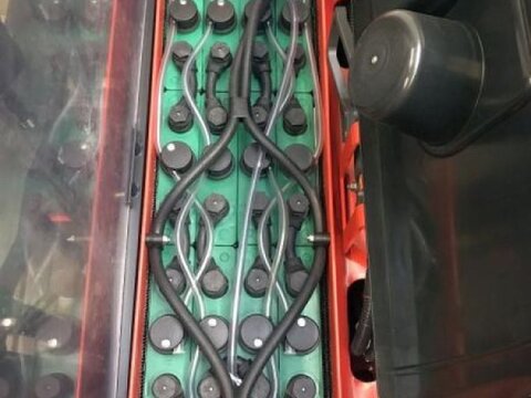 - Aquamatic und Elektrolytumwälzung auf Batterie- Fahrzeugstecker MRC 160A- seitlicher Batteriewechsel mit Rollen- Fahrzeug: Einfachzusatzhydraulik- Mast: Einfac