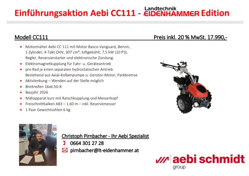 Aebi Motormäher CC 111 Ausstattung laut Aktionsblatt Weitere Ausstatungsoptionen gegen Mehrpreis Bei Interesse oder Fragen bitte nur melden !!! Standort in 5621 St.Veit im Pongau