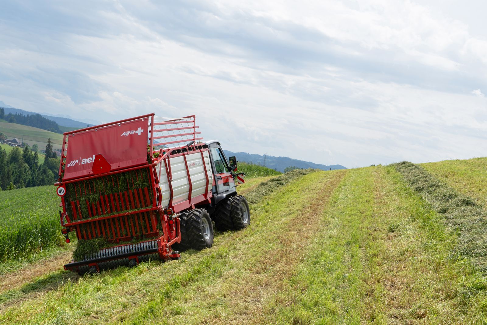 Transporter TP 410 mit Radstand 2,75m, 40 km/h Ausführung, Kabine mit Heizung, Lüftung und Radio, Türen links und rechts, Fahrersitz ist Luftgefedert mit Stoffbezug, Beifahrersitz mit Stoffbezug, Bereifung: 425/55R17 vorne, hinten Zwillingsräder 7.50-18/17, Verdrehdämpfung und Federspeicherbremse, Gruber Ladewagen ALW 317S - kurz mit 4 Schneidmesser, Lieferung ca. Juni 2026 möglich.