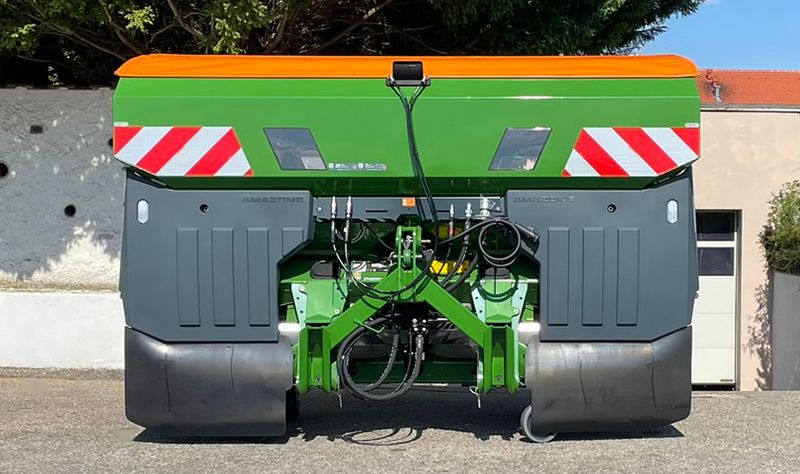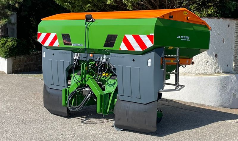 Wiegetechnikstreuer, Behälterinhalt 3200 Liter, Abdeckrollplane hydraulisch, Isobus-Maschine ohne Terminal (oder Isobus-Terminal Amatron 4 optional), Grenzstreueinrichtung AutoTS rechts und links, Roll- und Abstellvorrichtung hydraulisch, LED-Beleuchtung, Leermeldesensor und Neigungssensor.
