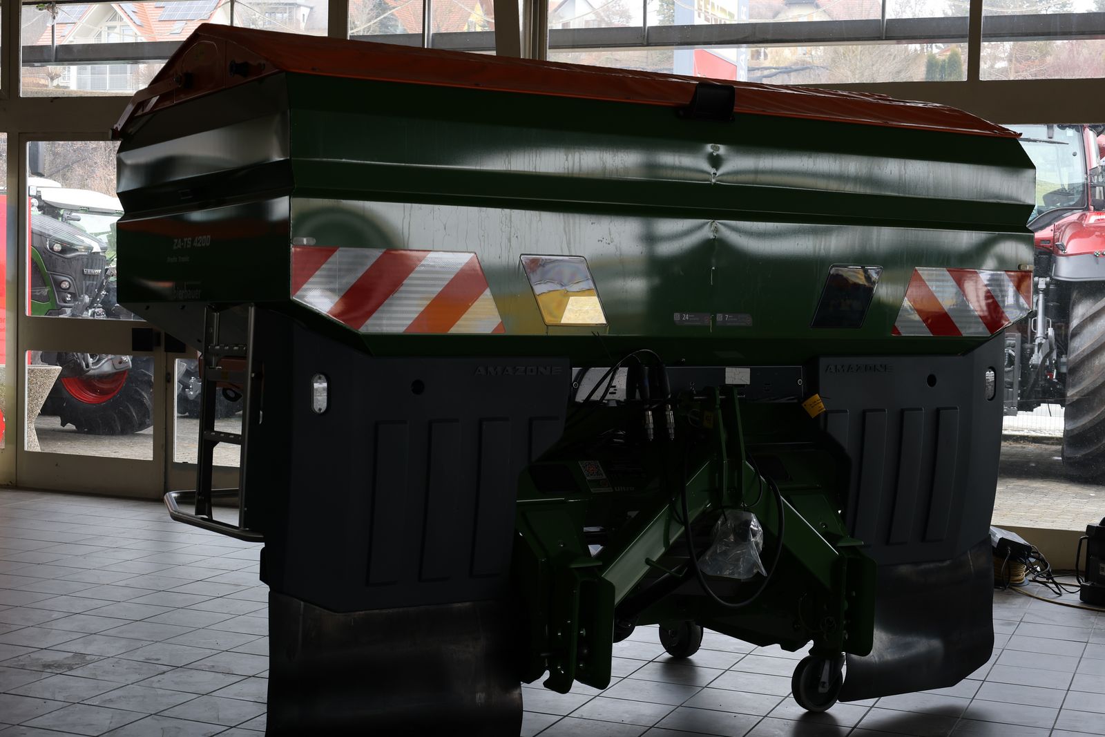 Anbaustreuer ZA Ultra bestehend aus Rahmen und Grundbehälter Profis-Wiegesystem für ZA 4.500 kg Einbauteile für ZA-Grundgeräte Streuwerk ZA-TS Tronic mit elektrischem Einleitsystem Länderspezifikation: Österreich Dokumentation in deutscher Sprache Typenschild – ZA-TS Ultra Profis Tronic Gelenkwelle B&P SFT mit Reibkupplung 1 3/8 Zoll, 910 mm, 6-teilig Behälteraufsatz L 4200, geschweißt Schmutzfänger L und Leitern LED-Heckbeleuchtung f. d. Straßenfahrt alle Länder außer USA und Kanada Abdeckrollplane L mit manueller Betätigung, ab Werk montiert Streuschaufelset TS 20 HD links Streuschaufelset TS 20 HD rechts Tronic-Antrieb links mit AutoTS Tronic-Antrieb rechts mit AutoTS Hauptscheibe links mit AutoTS Hauptscheibe rechts mit AutoTS Streuschirmkonsole hydraulisch BorderTS-Schirm für Grenzstreuen rechts für ZA-TS / ZG-TS 01 Rohrschutzbügel-Ergänzung rechts Positionssensor für hydraulische Streuschirmkonsole Rohrschutzbügel L Roll- und Abstellvorrichtung schwenkbar ab Werk montiert Neigungssensor für Wiegesystem Leermeldesensoren Bei Interesse an dieser Maschine oder Fragen zum technischen Zustand und zur Verfügbarkeit kontaktieren Sie mich bitte schriftlich oder telefonisch. „Irrtümer und Tippfehler vorbehalten. Zwischenverkauf vorbehalten.