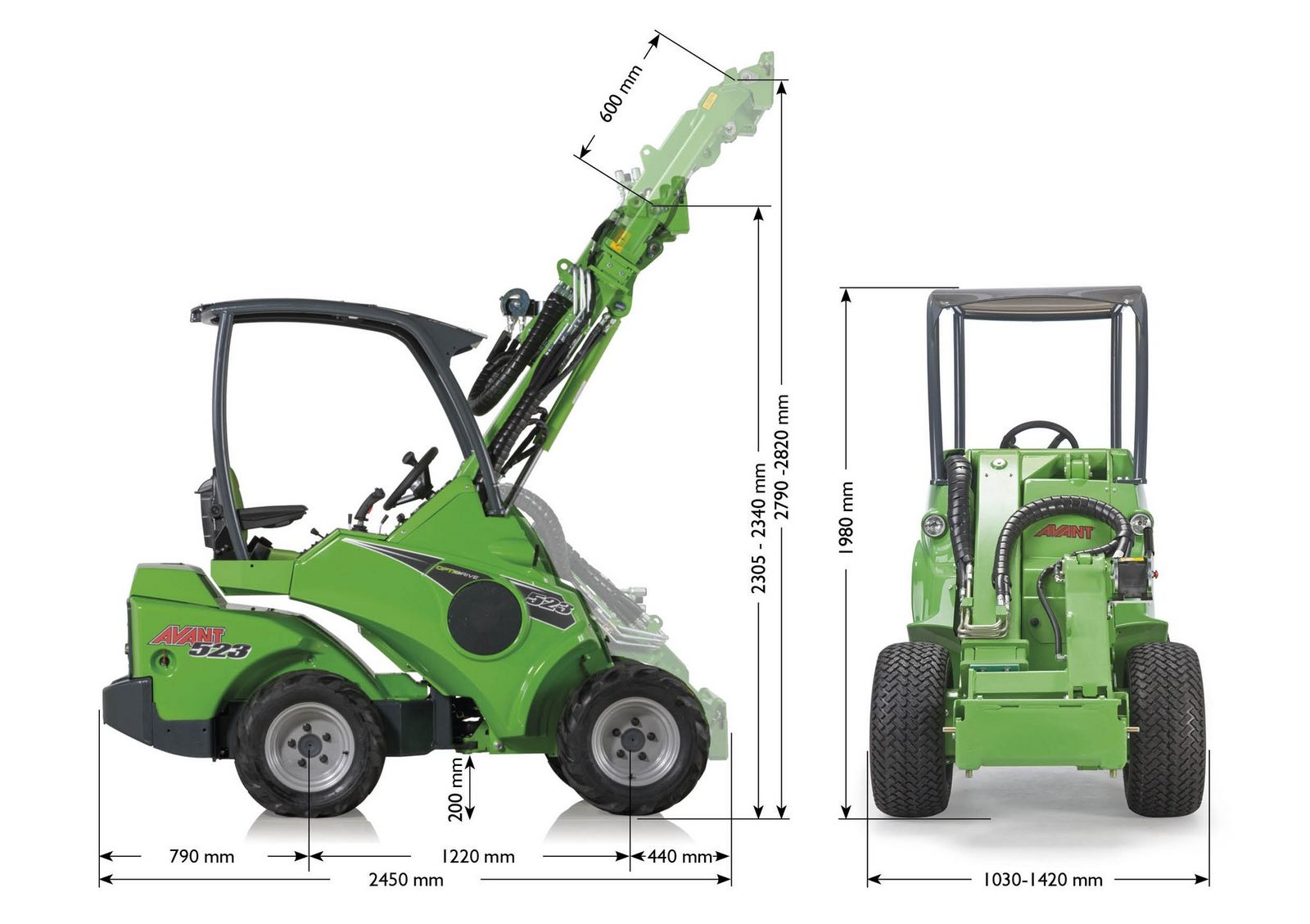 Der AVANT 523 Multifunktionslader vereint Kraft, Präzision und Flexibilität in einem kompakten Design. Mit dem speziell für diesen Lader entwickelten AUSTRIA PAKET sind Sie bestens für eine Vielzahl von Aufgaben gerüstet – von der Landwirtschaft über den Garten- und Landschaftsbau bis hin zu kommunalen Arbeiten. Dieser Lader ist Ihre Lösung für effizientes und wirtschaftliches Arbeiten. Kernmerkmale: • Leistungsstarker Kubota Dieselmotor: Der Kubota D902 Motor mit 22 PS und 3 Zylindern bietet durch Wasserkühlung und E-Start eine zuverlässige Performance. • Hydrostatischer Allradantrieb: Ausgerüstet mit vier Radmotoren und einer hydraulisch vorgesteuerten Verstellpumpe für den Fahrantrieb, garantiert er optimale Manövrierfähigkeit und Traktion. • Erweiterte Hydraulikfunktionen: Mit einer Zusatzhydraulik von 34 l/min bei 200 bar und vorne verlegten Hydraulikleitungen inklusive einer 3. Leitung für freien Rücklauf, ist der Lader bereit für den Einsatz verschiedenster Anbaugeräte. • Bedienerkomfort und Sicherheit: Ein gefederter Sitz mit Armlehne, Sicherheitsgurt, ROPS Überrollbügel und Plexiglasdach sorgen für Sicherheit und Komfort während der Arbeit. • Automatische Werkzeugverriegelung und Lastüberwachung: Diese Features verbessern die Arbeitseffizienz und Sicherheit beim Einsatz des Laders. • LED-Arbeitsleuchten: Zwei leistungsstarke LED-Leuchten verbessern die Sicht bei allen Lichtverhältnissen. • Anpassbare Bereifung: Standardmäßige Bereifung 23 x 10,5 / 12 mit der Option, auf spezielle Anforderungen anzupassen. Vorteile der Avant Serie 500: • Einzigartiges Design und überragende Vielseitigkeit: Mit Features wie dem Teleskophubarm und der Parallelführung steigern Sie Ihre Produktivität und Arbeitsqualität. • Optimale Ergonomie: Die durchdachte Konstruktion bietet viel Platz und eine exzellente Sicht auf das Arbeitsumfeld und Anbaugeräte, was die Sicherheit und Effizienz der Arbeit maximiert. • Breite Auswahl an Anbaugeräten: Von Abbaubaggern über Schlegelmulcher bis hin zu Schaufeln und Rasenmähern – erweitern Sie die Einsatzmöglichkeiten Ihres Laders nach Bedarf. • Hohe Standfestigkeit ohne Zwillingsräder: AVANT Lader sind bekannt für ihre Stabilität und Sicherheit, selbst unter schwierigen Bedingungen. Individualisierbar nach Bedarf: Der AVANT 523 lässt sich mit verschiedenen Kabinen-Optionen (L oder GT) und zusätzlichen Features wie Parallelführung, Schalterkit und Straßenzulassung individuell konfigurieren, um genau auf Ihre Anforderungen zugeschnitten zu sein. Mit der Möglichkeit, bis zu 19 km/h schnell zu sein und auf Wunsch eine Einzelgenehmigung für den Straßenverkehr zu erhalten, bietet der AVANT 523 nicht nur hervorragende Leistung, sondern auch unübertroffene Flexibilität für den Wechsel zwischen verschiedenen Einsatzorten. Entdecken Sie die Möglichkeiten des AVANT 523 und machen Sie ihn zu Ihrem zuverlässigen Partner für alle Anforderungen. Avant Hoflader, Radlader, Multifunktionslader, Geräteträger