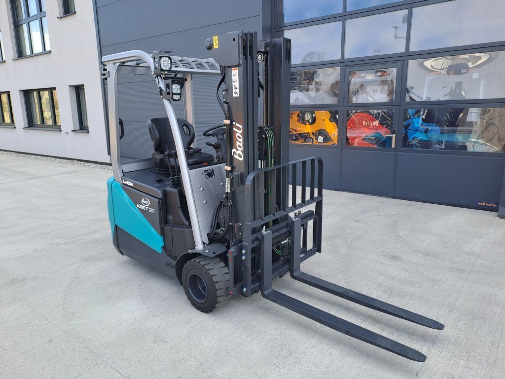 Bauart: Frontstapler / Elektro 3 Rad-Stapler, Tragkraft: 2000kg, Hubhöhe: 4700mm, Bauhöhe: 2165mm, Gabellänge: 1200mm, Batterie: Lithium-Ionen Bj. 2024 80V , Bereifung vorne: Superelastik Einfach , Bereifung hinten: Superelastik Einfach , Anbaugeräte: Seitenschieber, Sonderausstattung: 3. Ventil, 4. Ventil, Arbeitsscheinwerfer hinten, Arbeitsscheinwerfer vorn, Halbkabine, Lastschutzgitter, Vollfreihub, Lithium-Ionen Technologie, Innenspiegel, LED, 3-Rad, Sitz, Sonderausstattungbeschreibung: Aufstiegsgriff vorne links, Haltegriff hinten rechts, Panoramaspiegel Warnleuchte gelbes Blitzlicht, vorne: 2 geschützte LED-Scheinwerfer mit Fahrtrichtungsanzeiger, hinten: LED-Schluss- und Bremsleuchten, Fahrtrichtungsanzeiger, Warnblinkanlage, Signalton bei Rückwärtsfahrt
