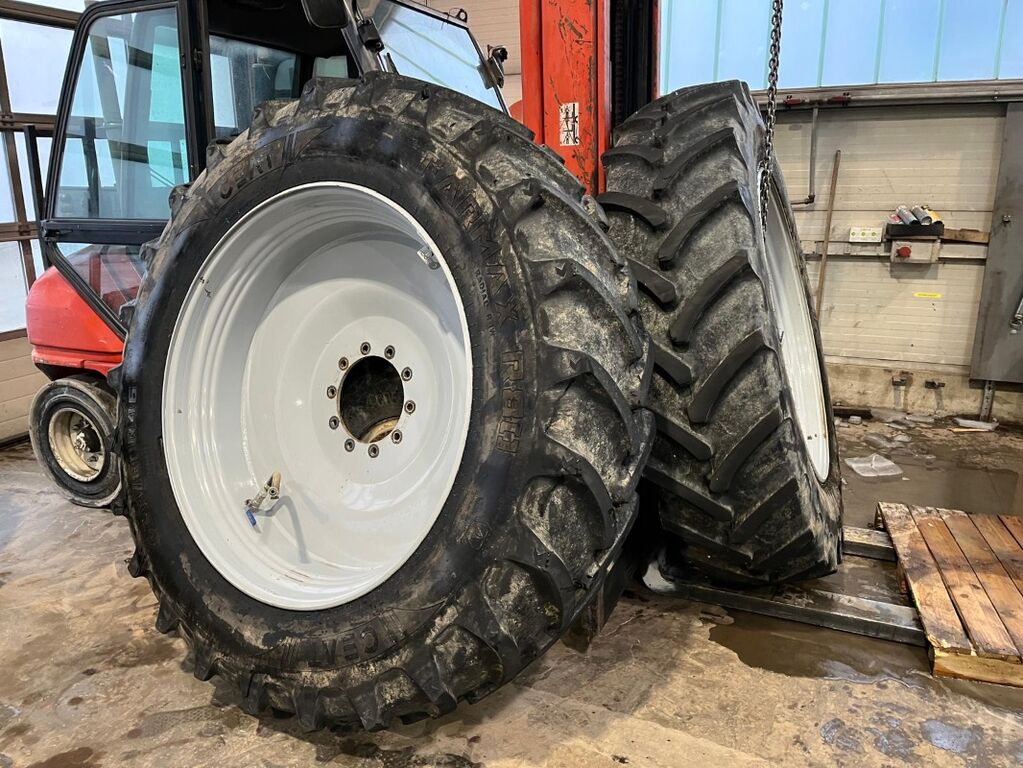 2 gebrauchte Hinterräder Größe: 480/80 R46 158 A8 Hersteller: CEAT Modell: FarmMax R80 DOT Nummer: 1721 / Baujahr 2021 Restprofil ca. 30 mm ca. 50 % Tragfähigkeit 4250 kg bei 40 km/h Abrollumfang 5800 mm ( ohne Gewähr) montiert auf Festspurfelge TW 16x46 Nabenbohrung 281 mm Lochkreis 335 mm 10 Loch, 24 mm zylindrisch Schüsselstärke 16 mm Lattenmaß: 320 mm / 110 mm für ca. 2,25 m Spurbreite Luftanschluss für Schnellfüllung, und Ventil mit Schutz Verkauf nur als Paar komplett Standort: Zürn Landtechnik D-88422 Kanzach